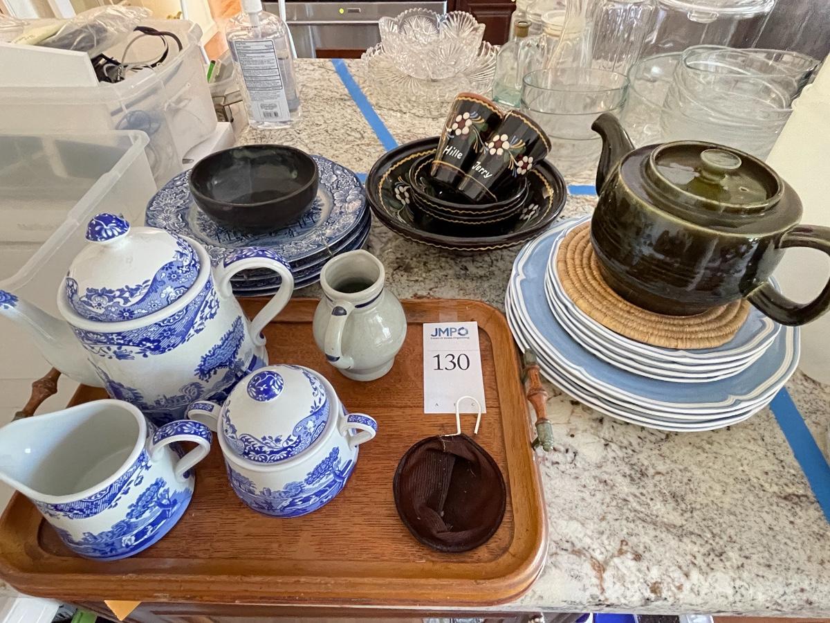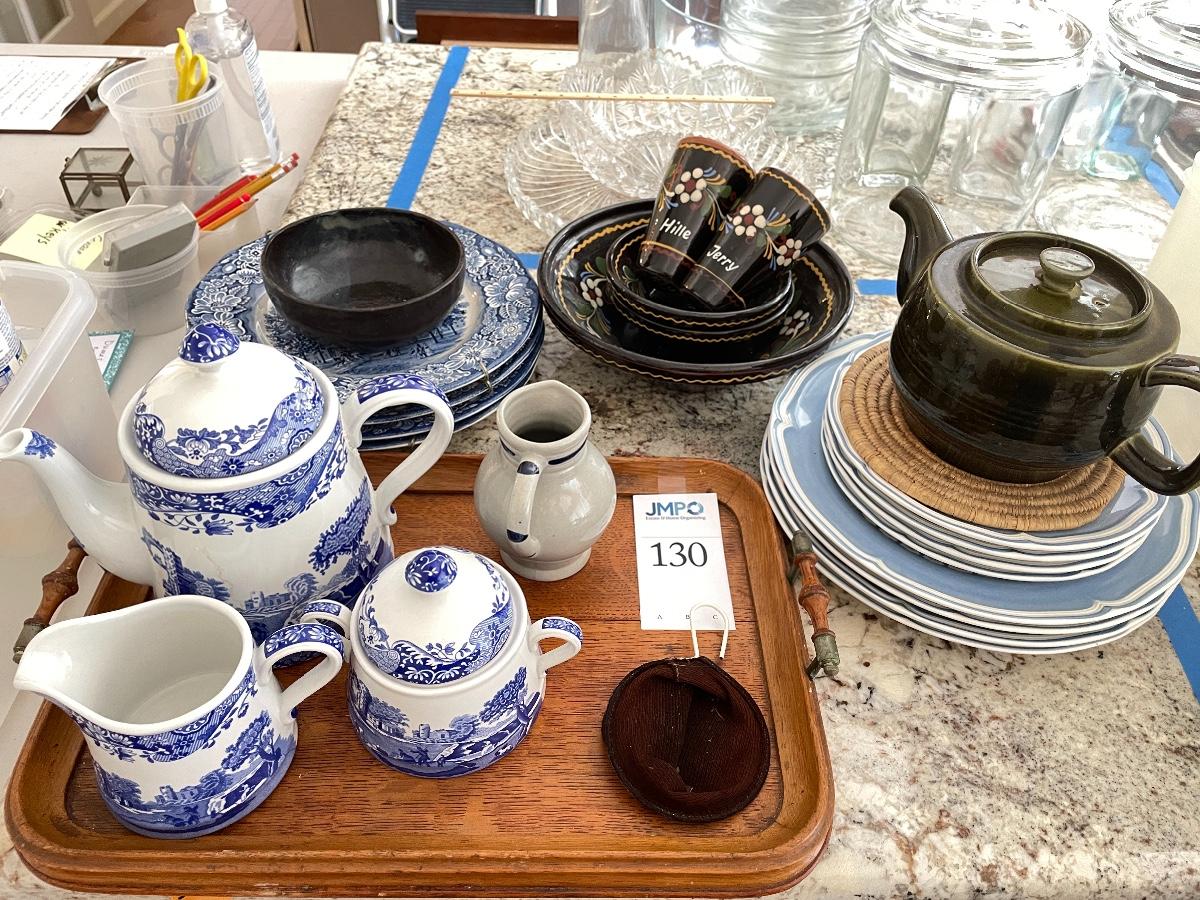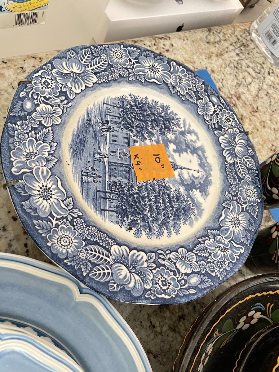 STAFFORDSHIRE Ironstone Liberty Blue Dinner Plate Set of 4 , porcelain tea pots, serving tray, decorated dishes.