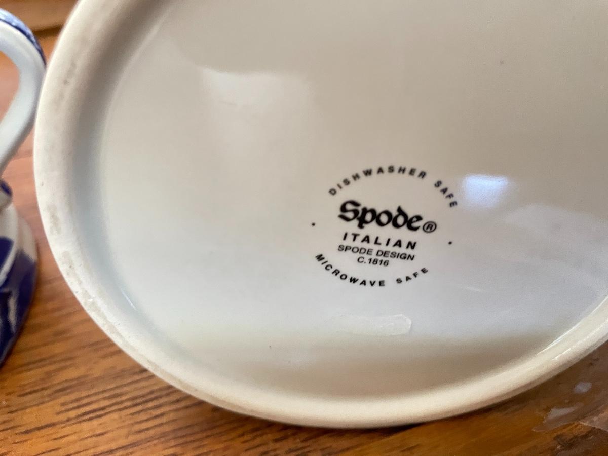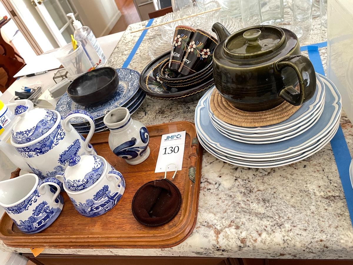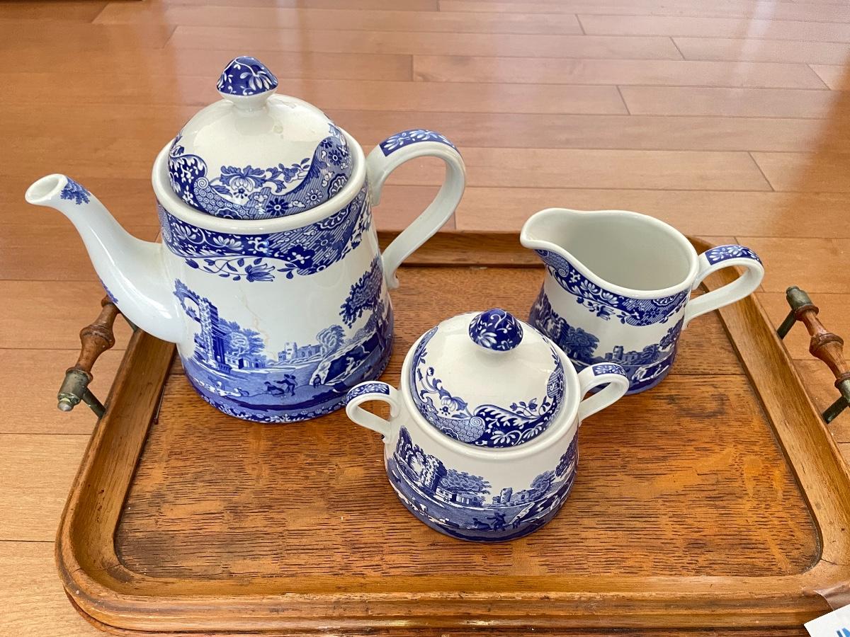 STAFFORDSHIRE Ironstone Liberty Blue Dinner Plate Set of 4 , porcelain tea pots, serving tray, decorated dishes.