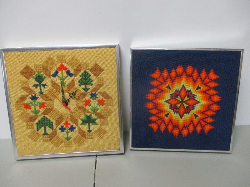 Lot 130 - Framed Embroidered Wall Art - Battery Operated Clock