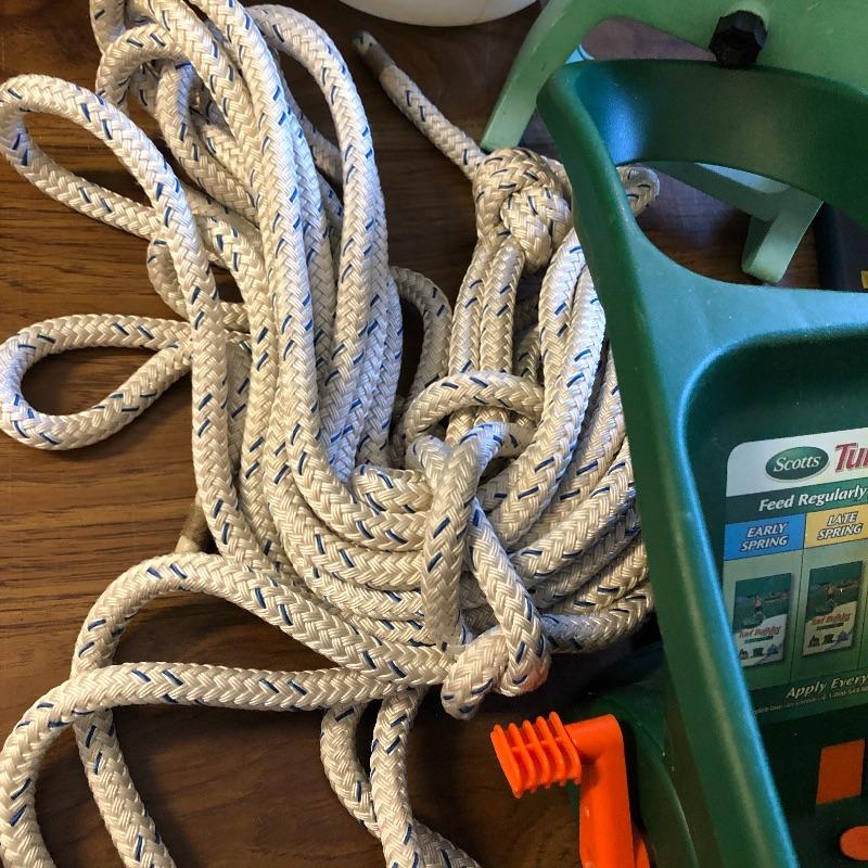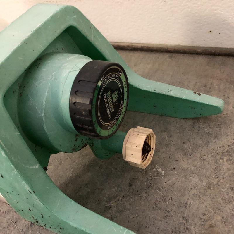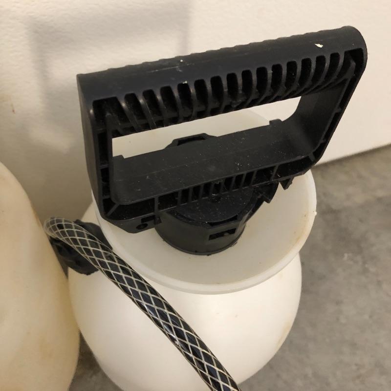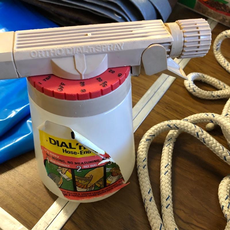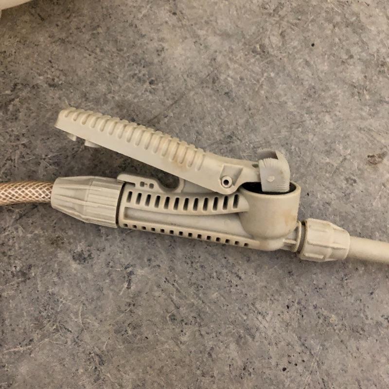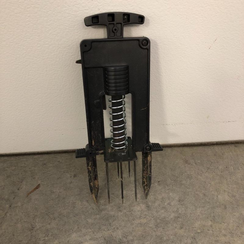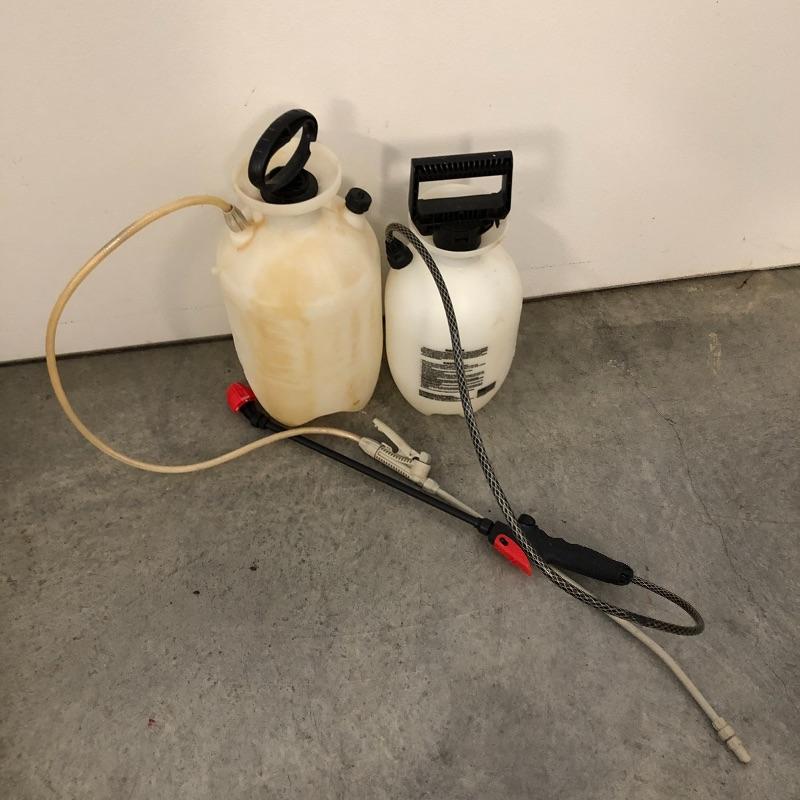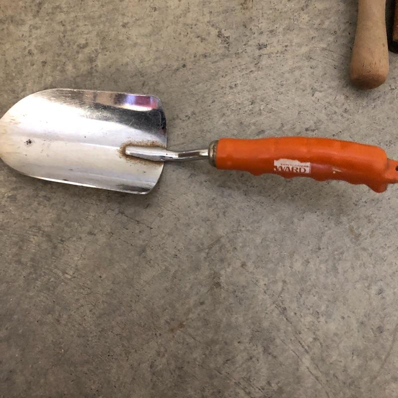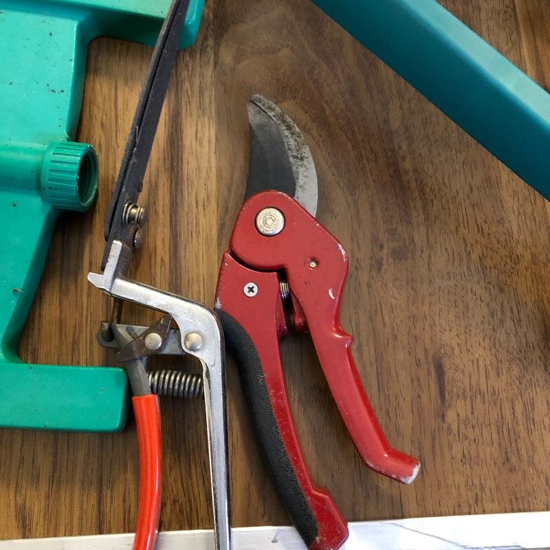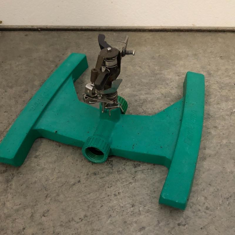This lot contains everything you could want for your gardening needs. It has a large blue wheelbarrow that holds four cubic feet of material; a hose; four sprinklers of varying brands; gardening tools such as shears, a bulb planter, a mini shovel, and a mini forked shovel; two pesticide sprayers; and two lawn chairs in great condition. Local pickup only.