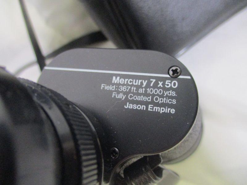 The case and binoculars look to be in excellent condition. They have a 7x50 magnification. There are caps for both ends.