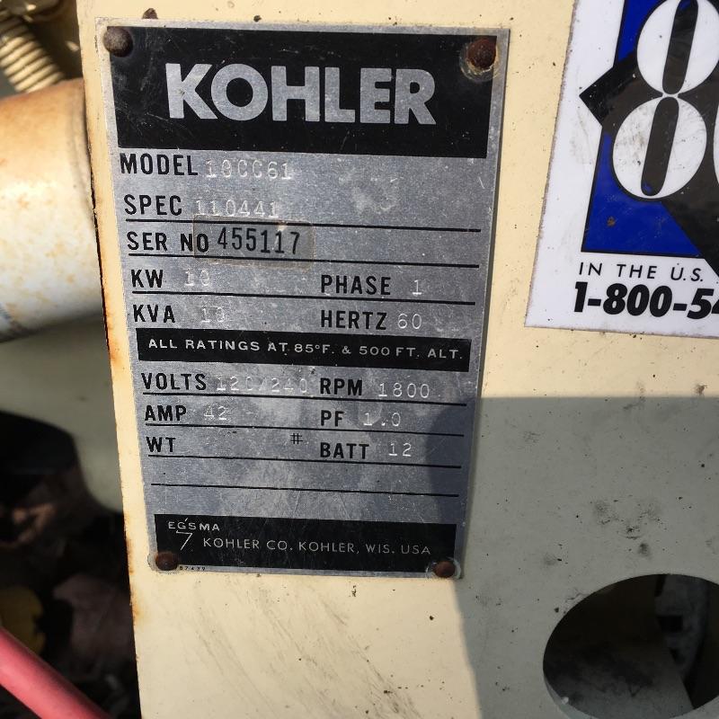 Kohler 10kw generator model # 10CC61 with Ford motor model # VSG-1111-6005-A. Generator shows 1420 hours on meter.