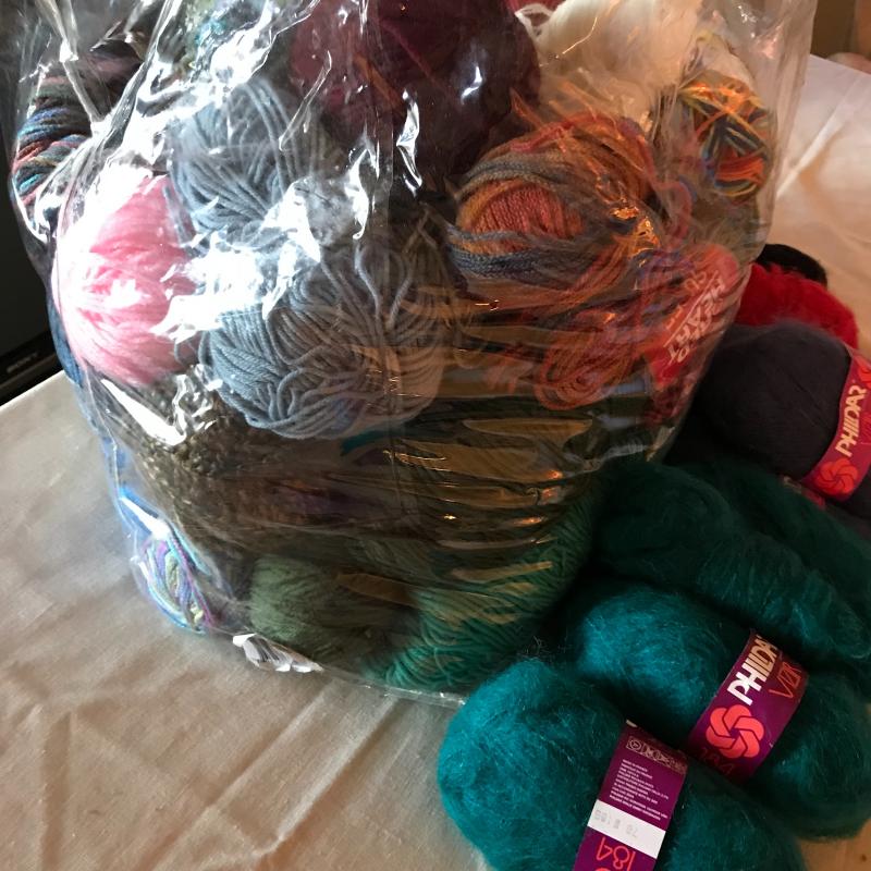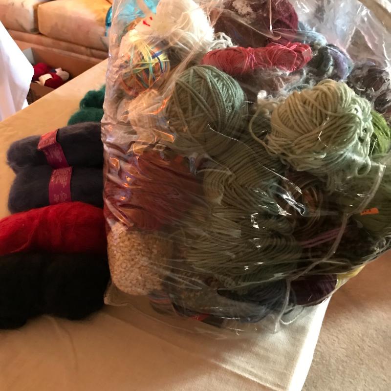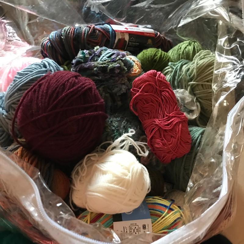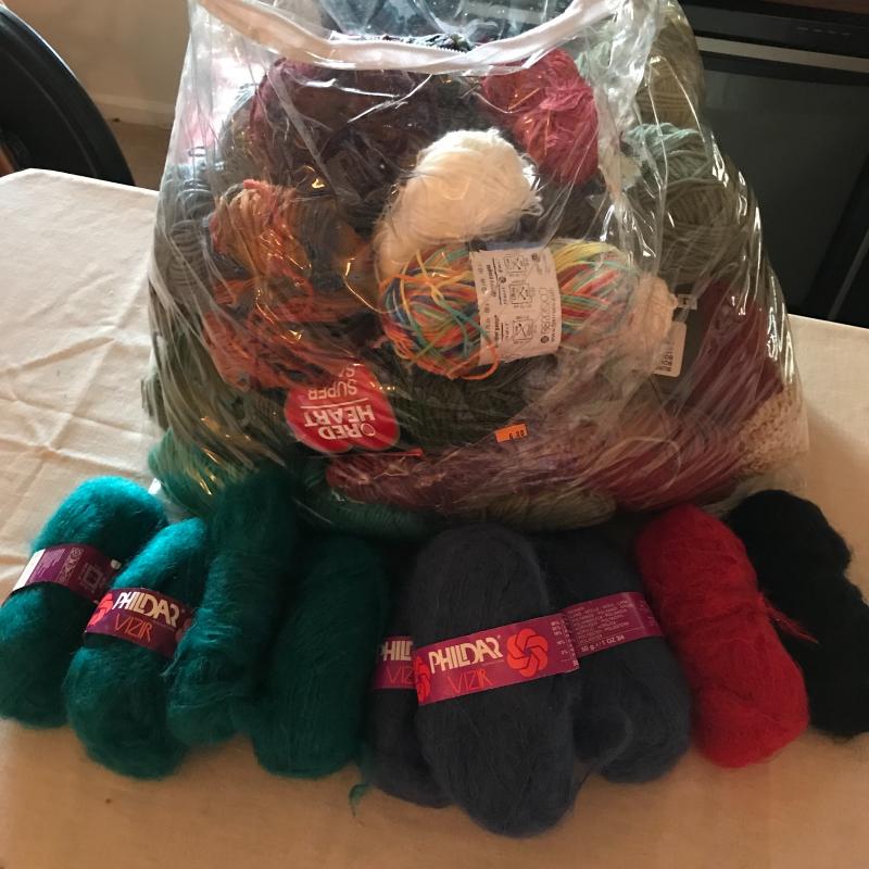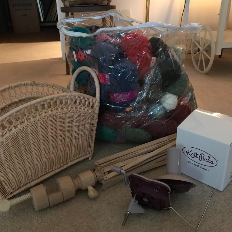 Huge lot of mostly-full skeins and balls of Yarn. Dozens of bright, beautiful yarns of all weights for your knitting, crocheting, and crafting pleasure. Includes cotton and some wool/synthetic blends. Lot also includes a basket for holding your current knitting project (could easily be spray painted in your favorite color), and two ball winders, both from Knit Picks.
