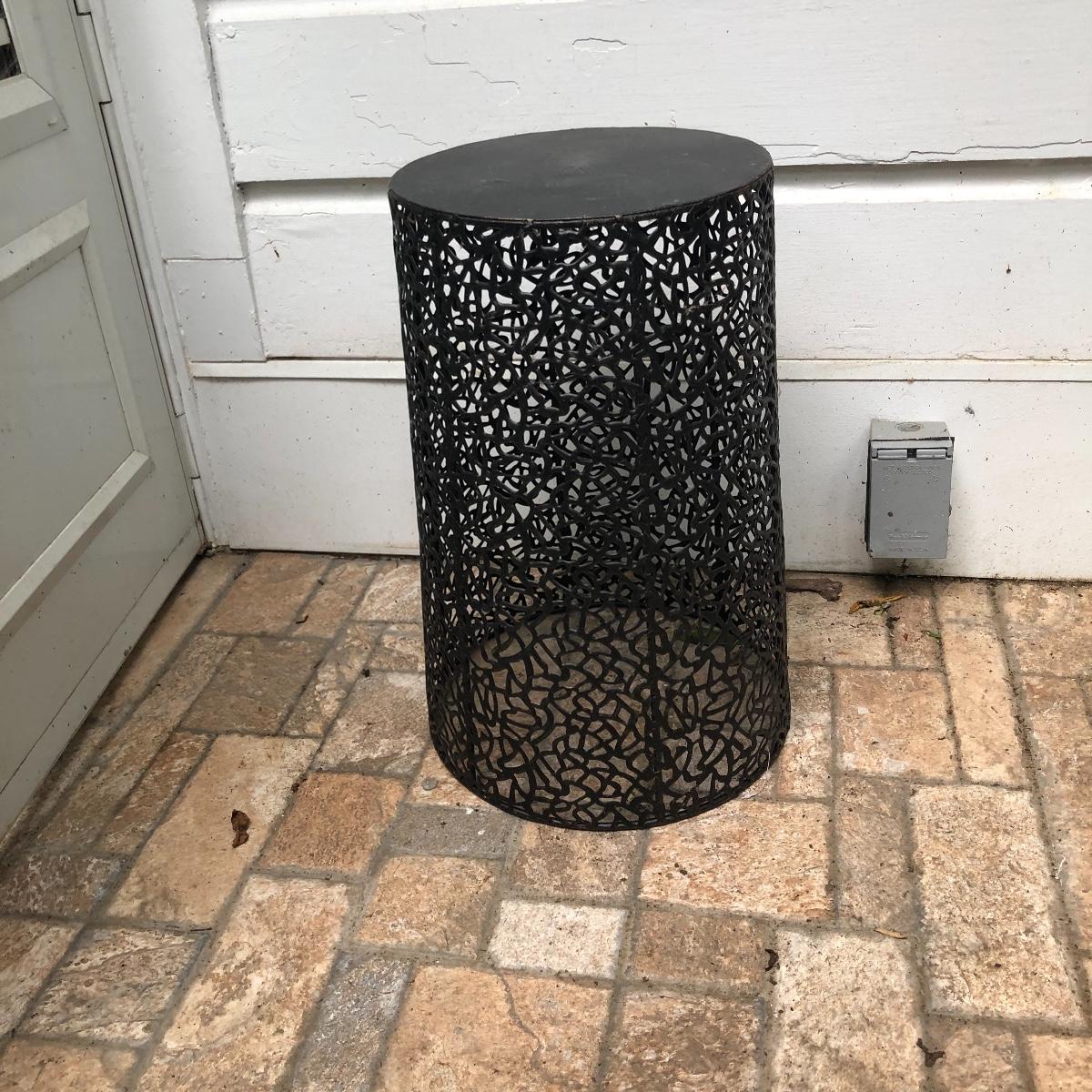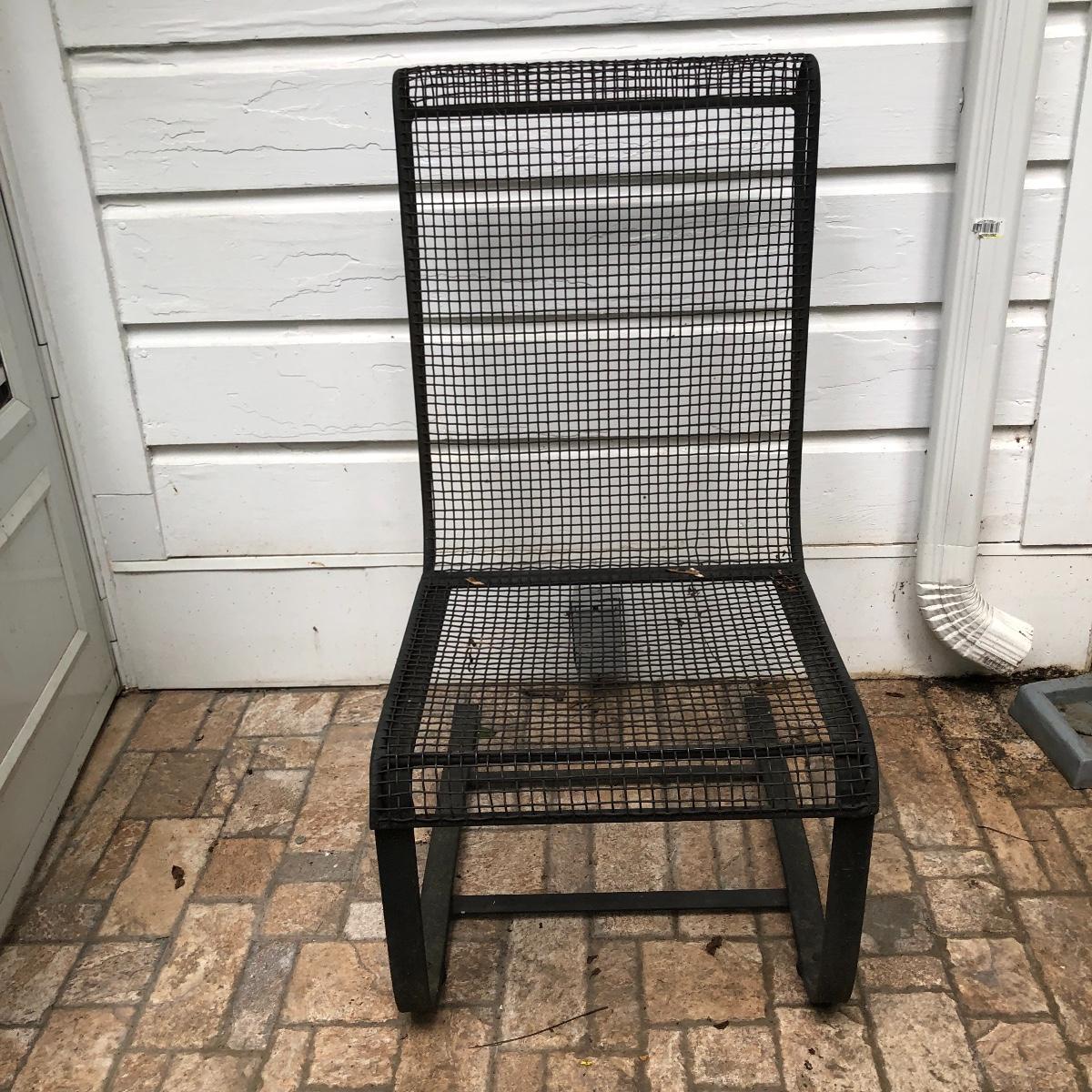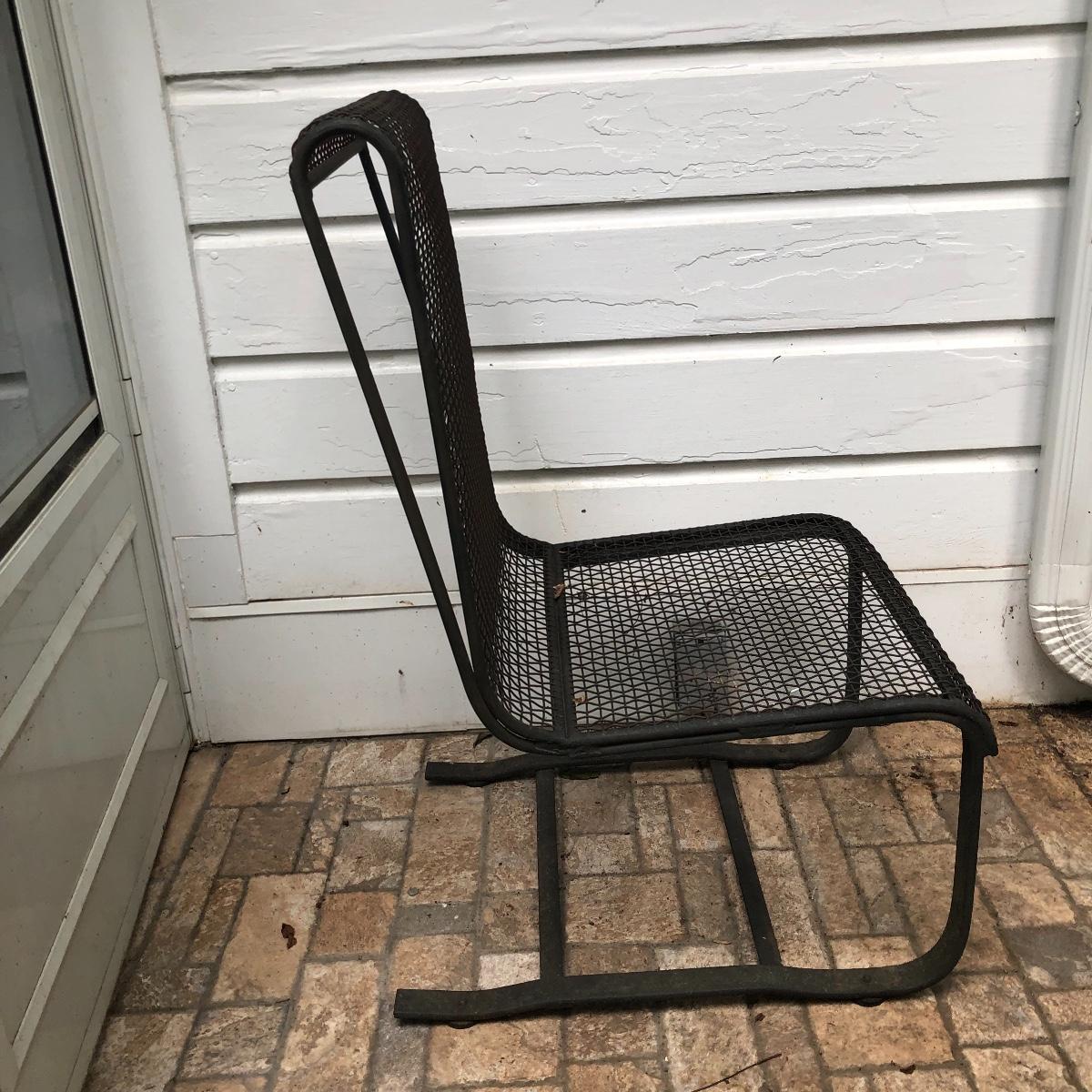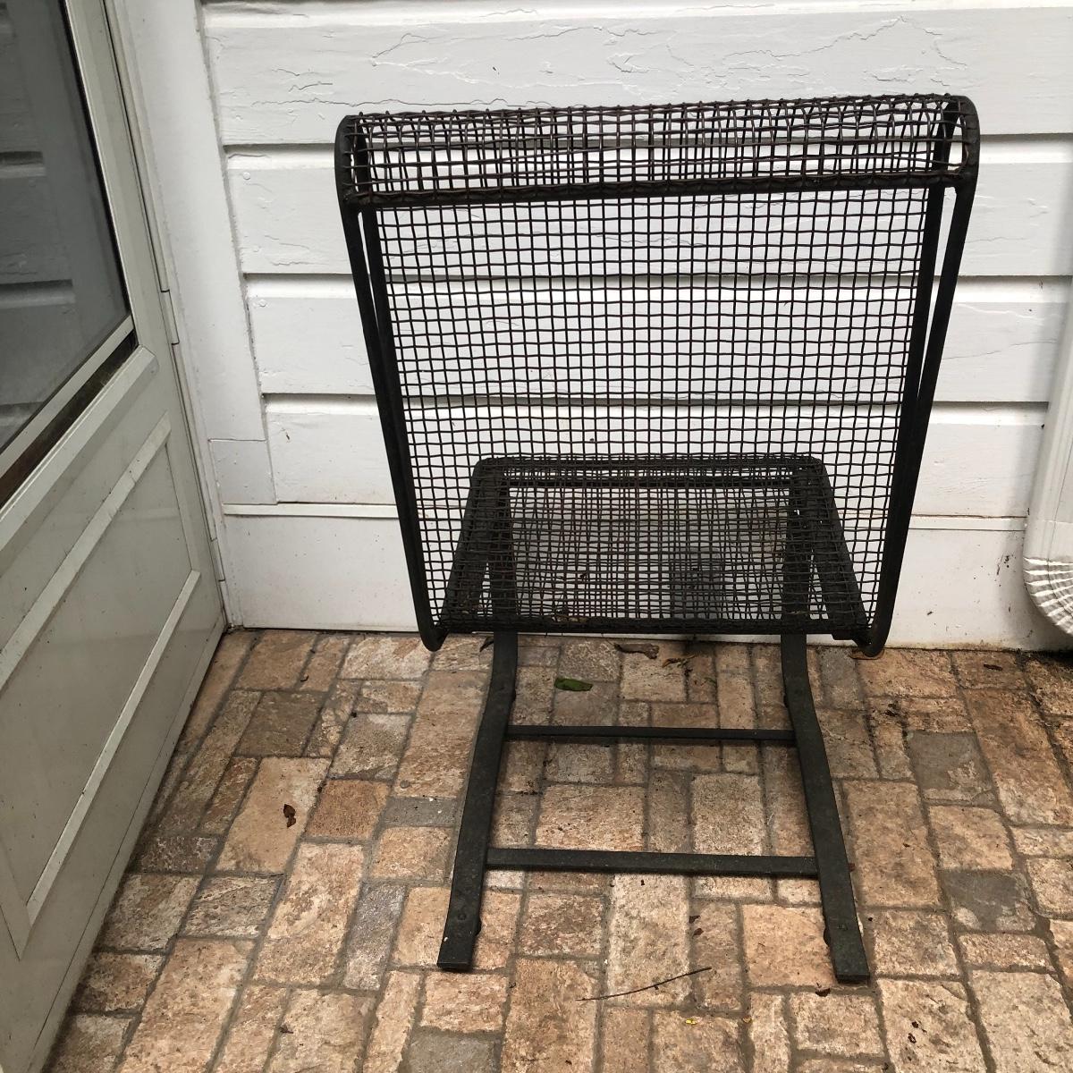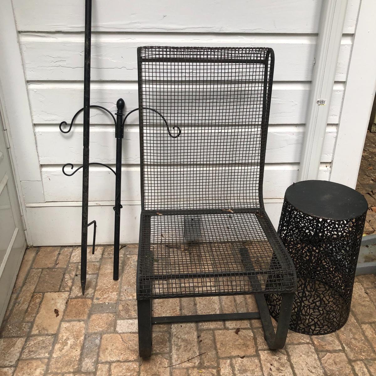 Sit back and relax in your garden with this trio of metal items. Lot includes heavy metal chair, metal circular plant