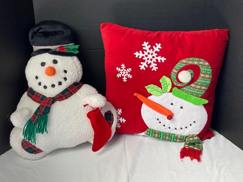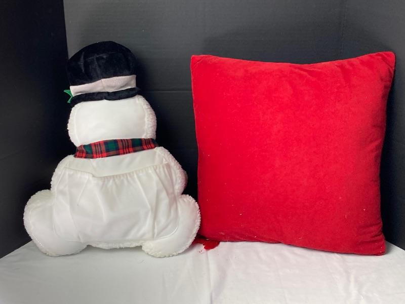 Lot #130 Pier 1 Snowman Throw Pillow and Snowman with Pocket