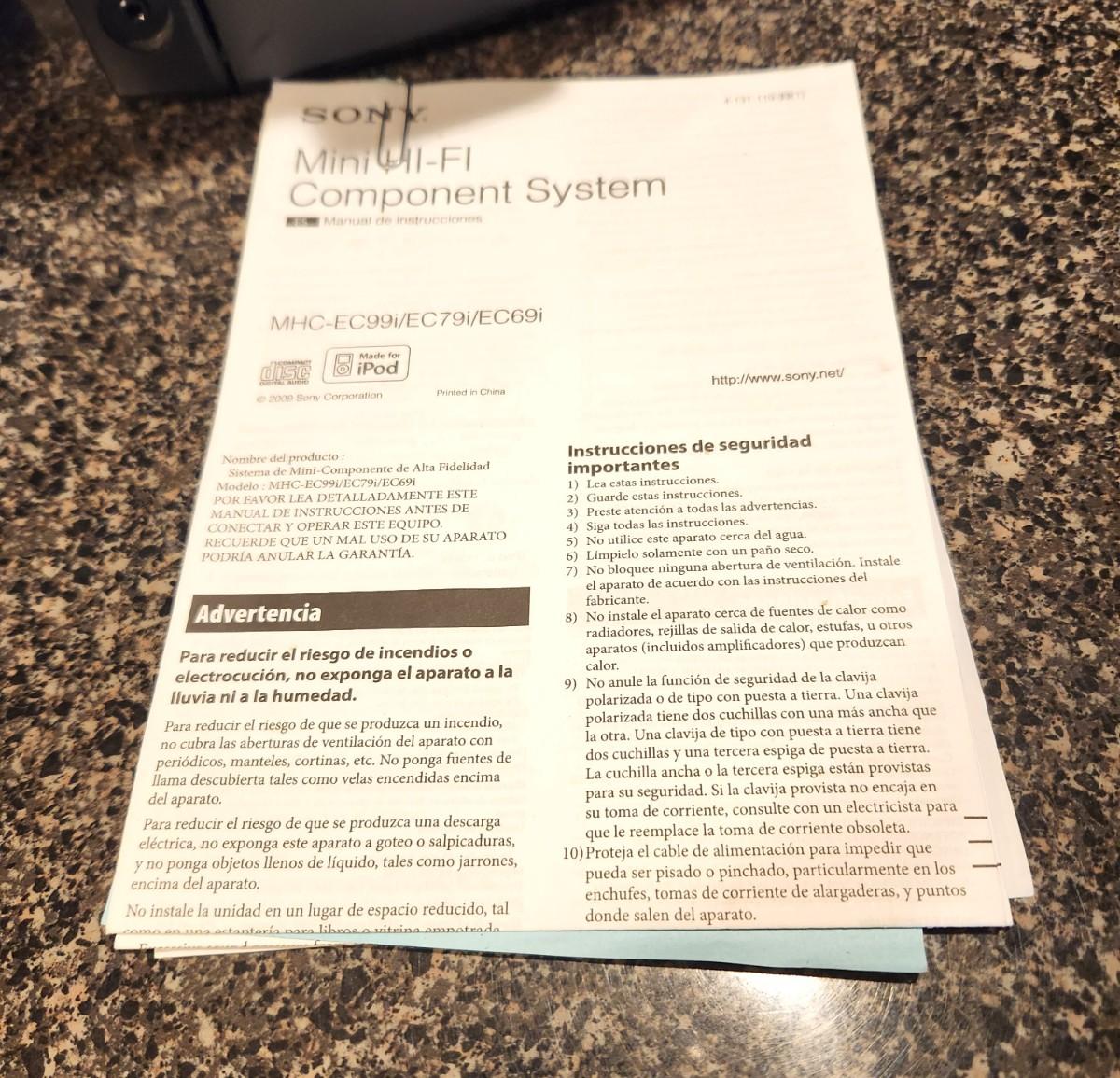 CD Player works, radio works. Model #MHC-EC691. Has an I-Pod station, but we couldn't test it. Comes with the manual.