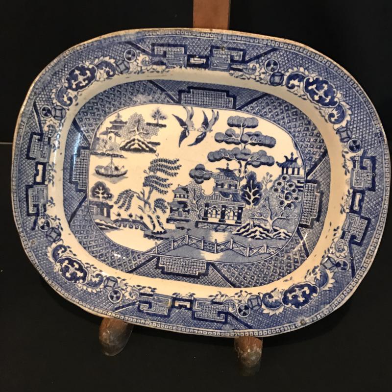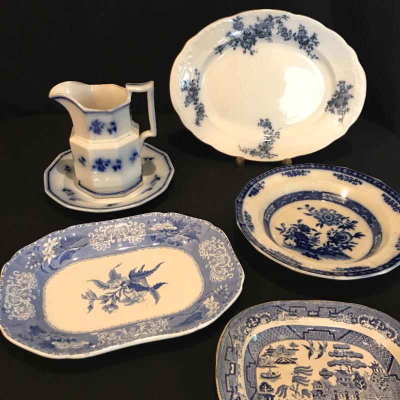 Several blue and white patterned dishes. See photos for details. Largest platter is 14.5”l x 11”w. Pitcher is 7.5”h. Shipping or local pick up in Asheville.