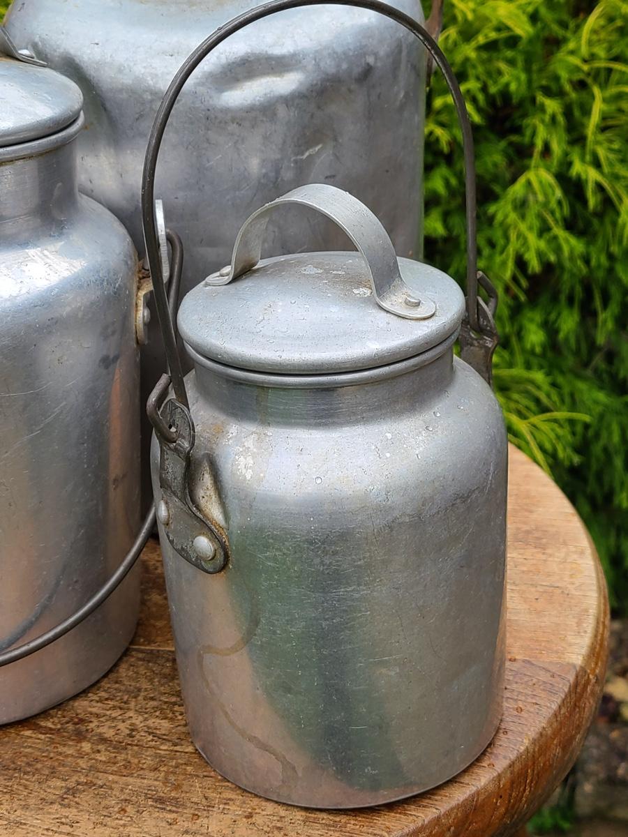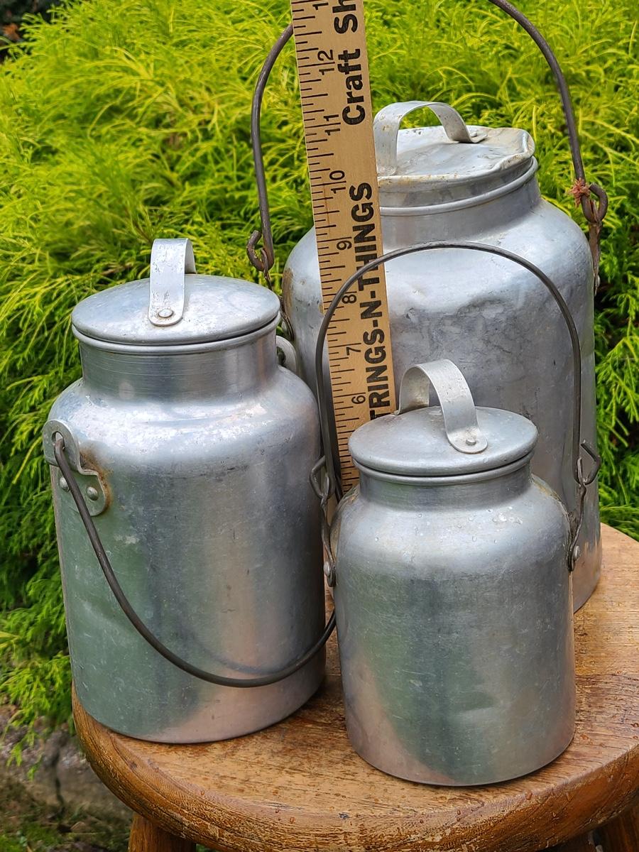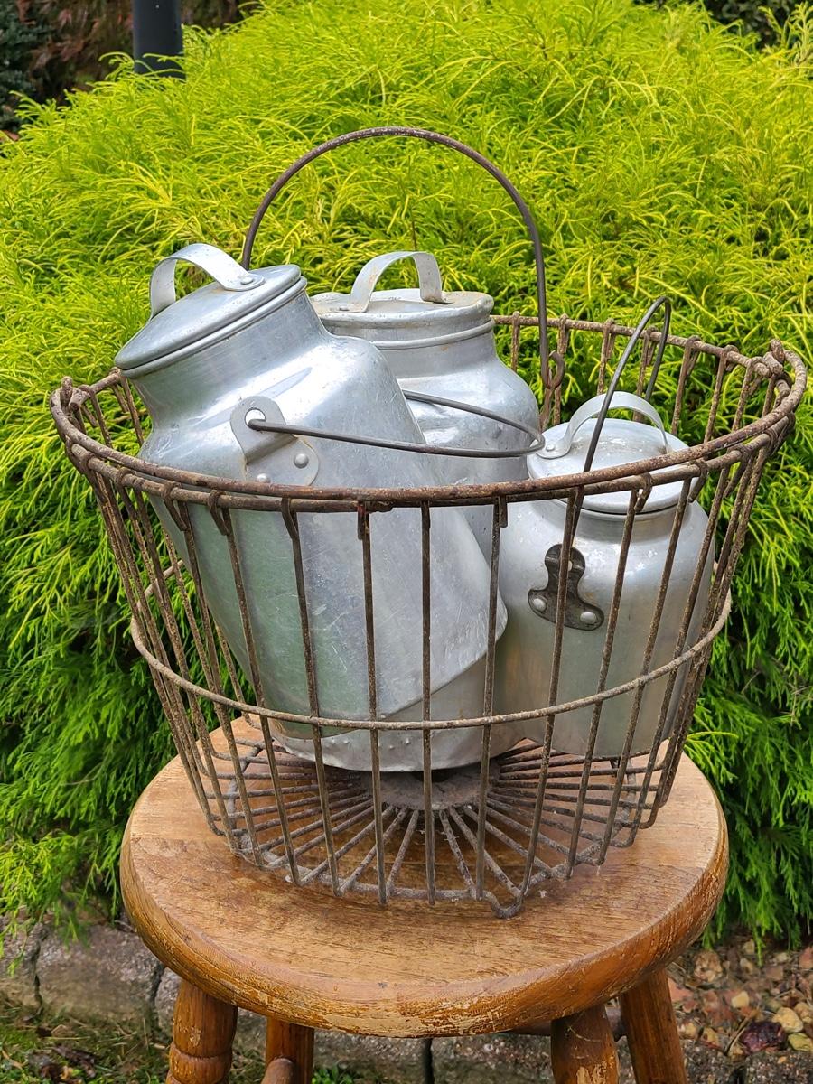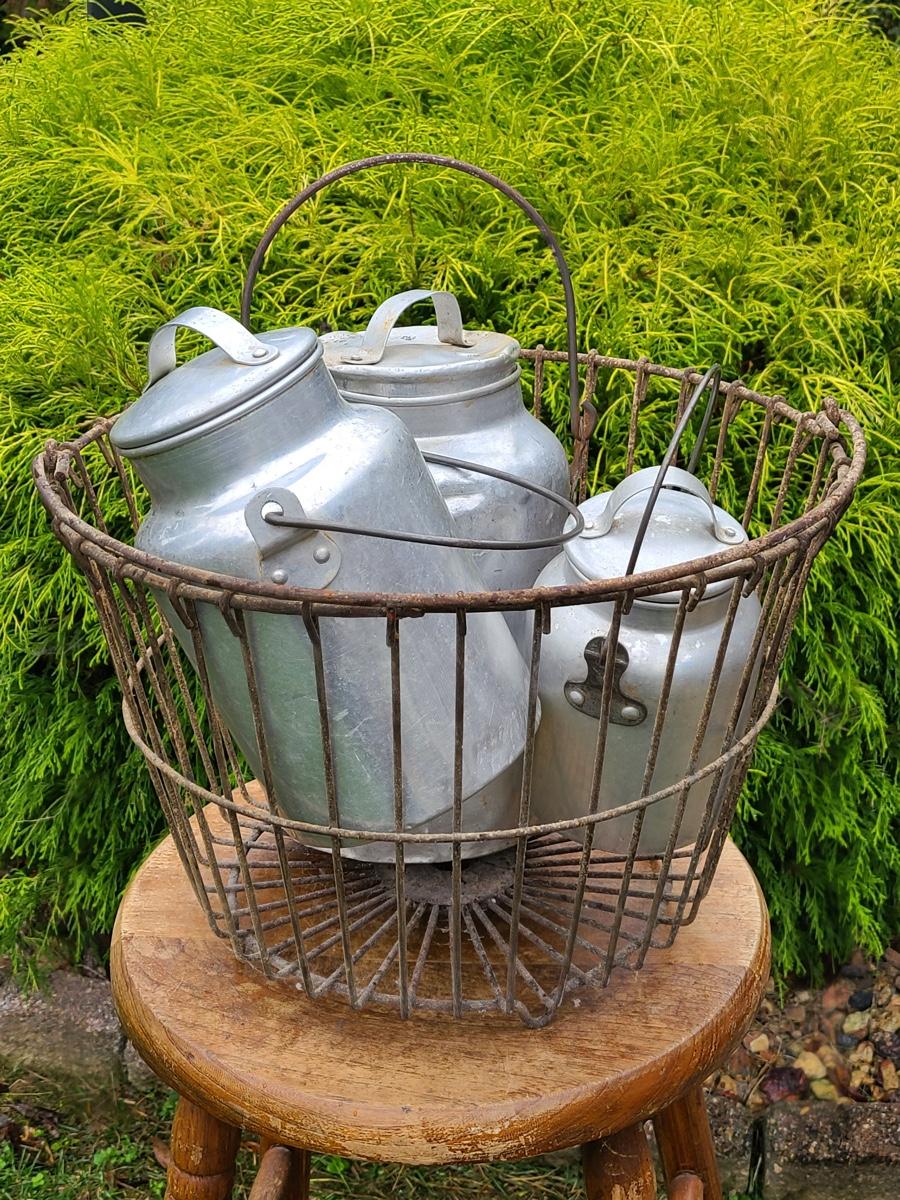 Lot 130: Vintage Metal Egg Basket & Aluminum Milk Cans