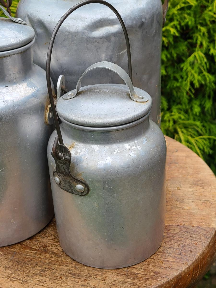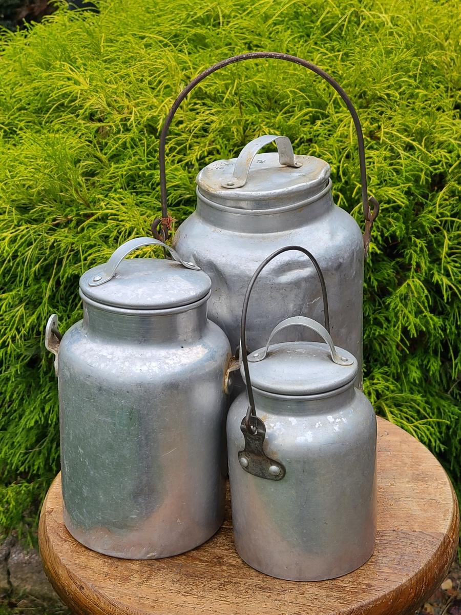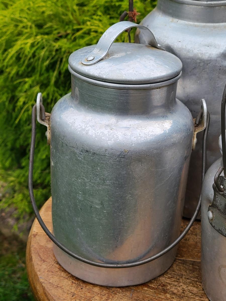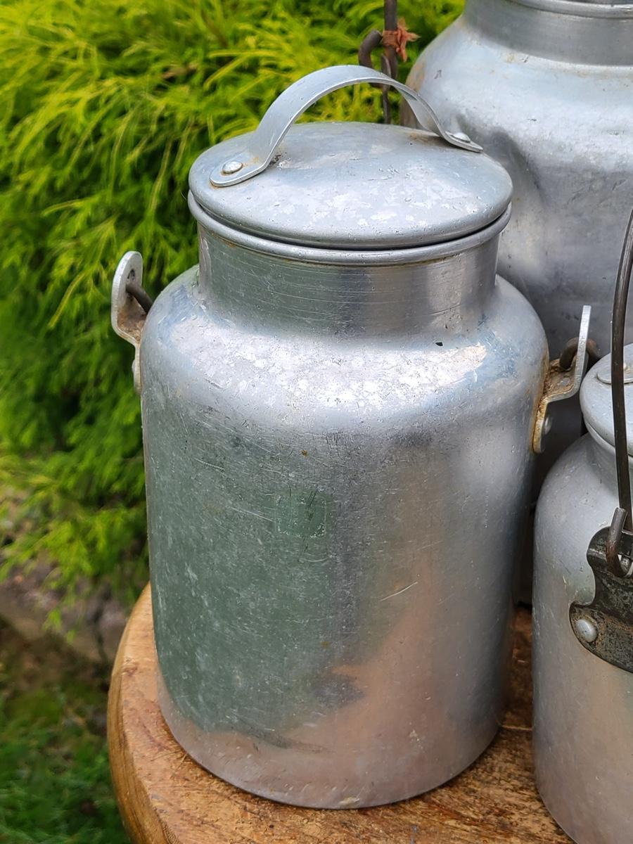 Lot 130: Vintage Metal Egg Basket & Aluminum Milk Cans