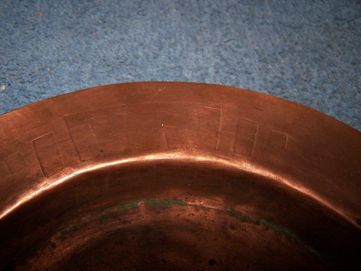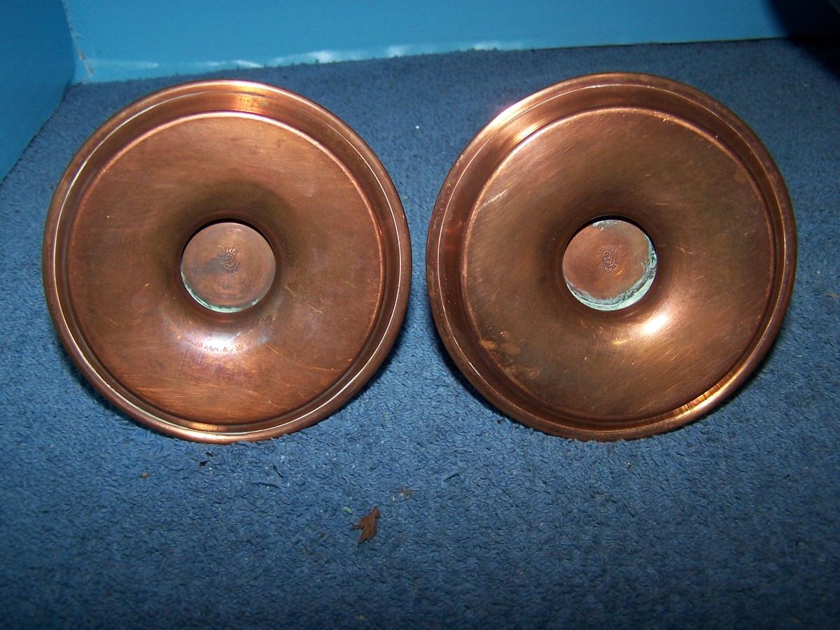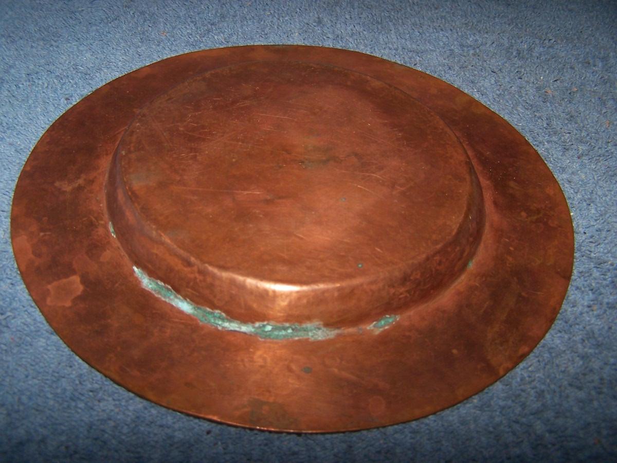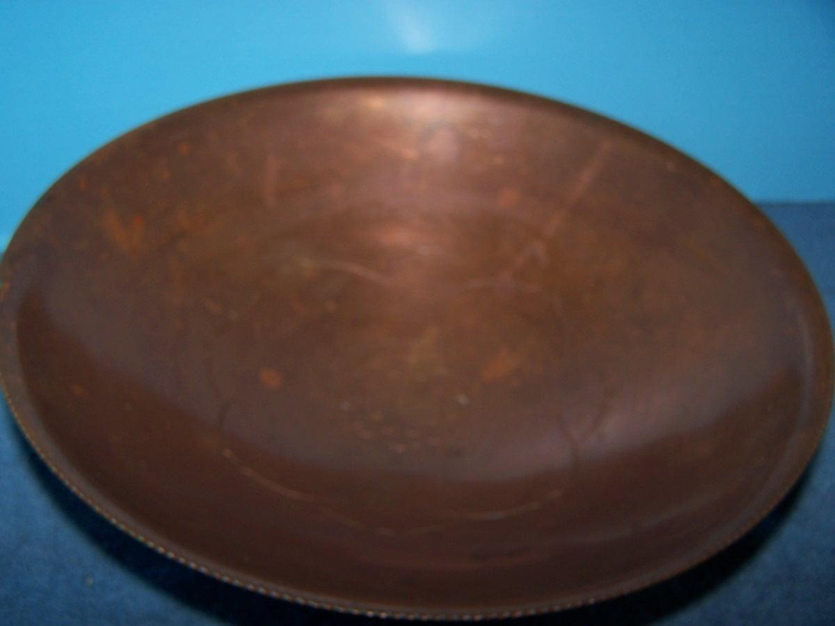 THESE ARE WONDERFUL VINTAGE COPPER ITEMS!!! BOWL WITH A WOODEN BASE IS 11 1/4'' ACROSS, HAS TARNISH AND SPOTS.. LIGHT WEAR..