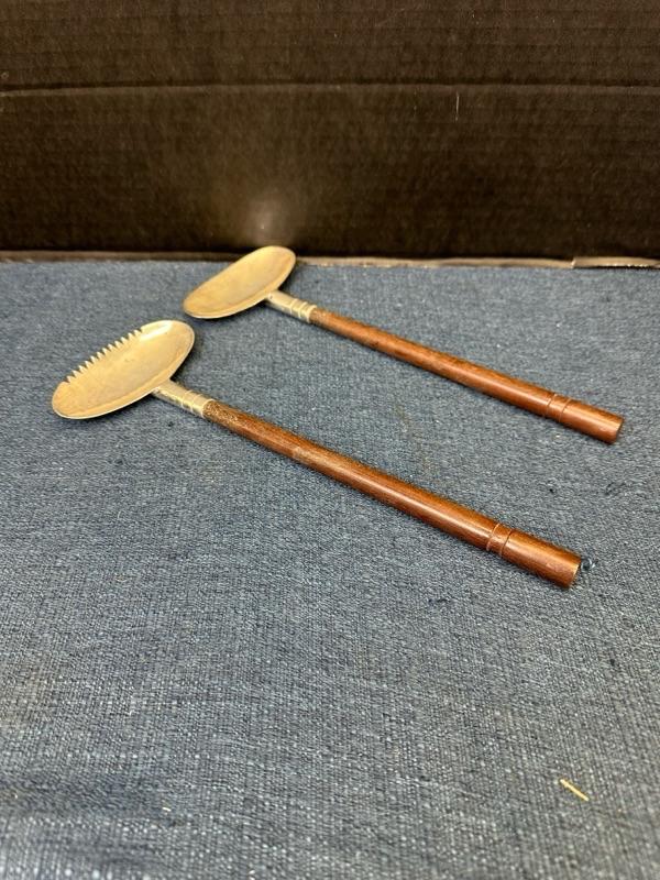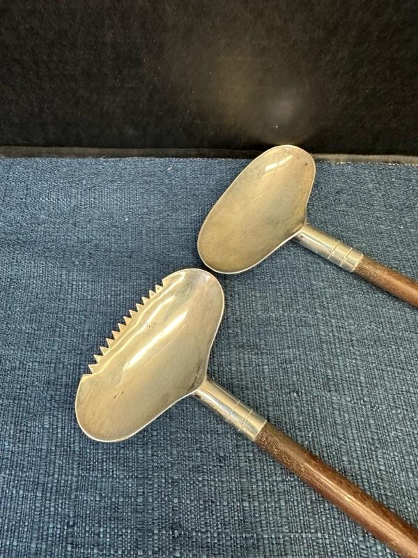 Vintage sterling and wood salad, spoons total weight 125 grams 10 1/2 inches long