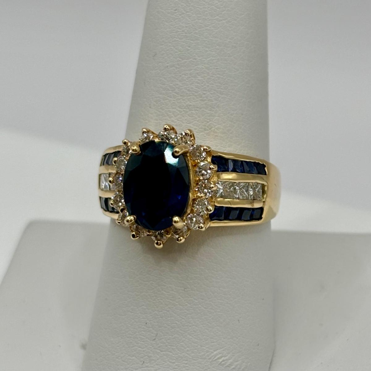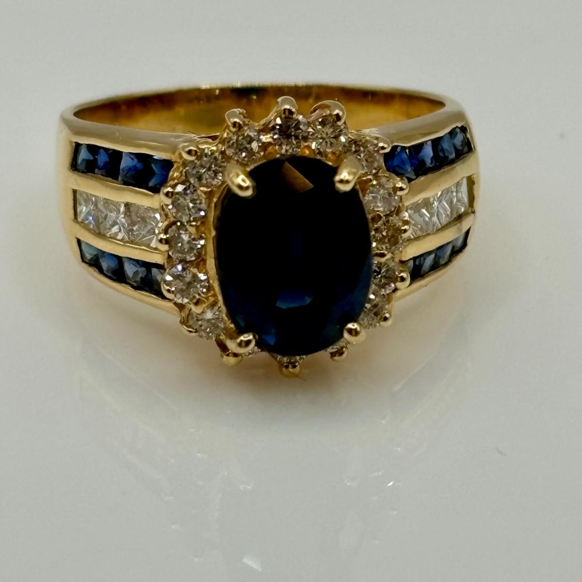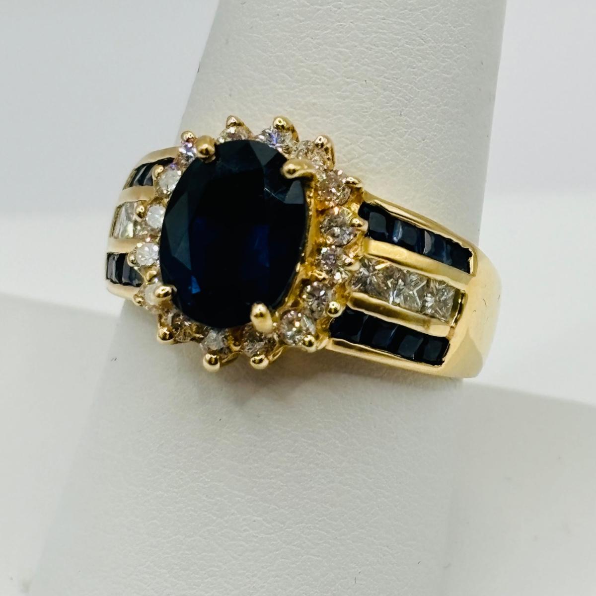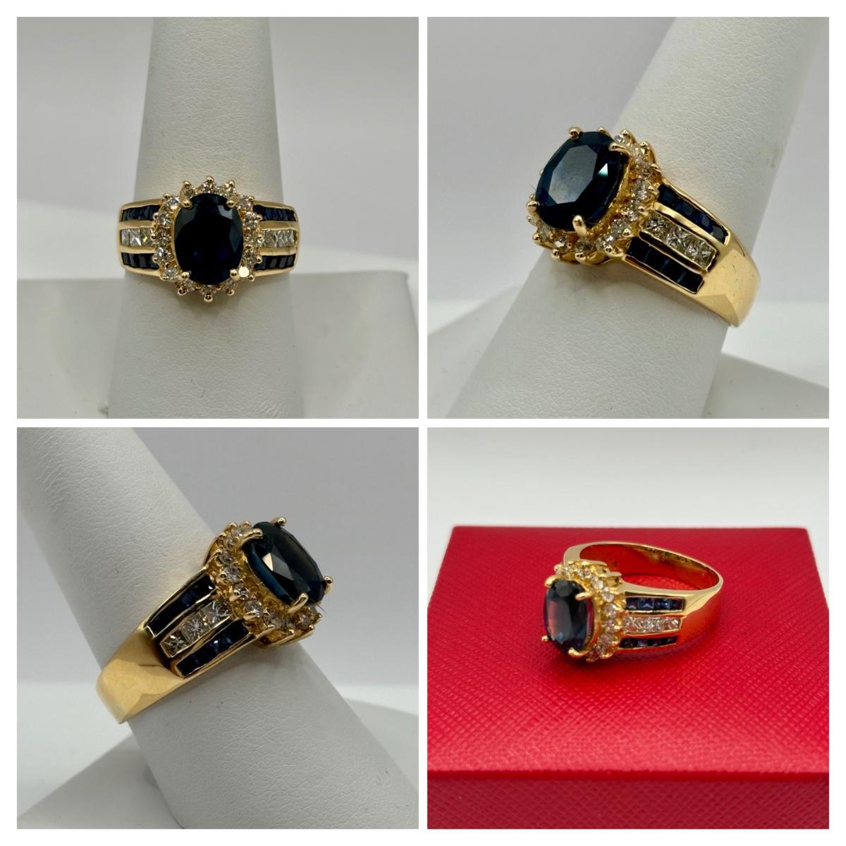 LOT 131: Natural Blue Sapphire & Diamond: 18KT Yellow Gold, sz8