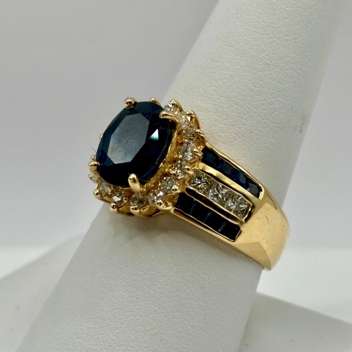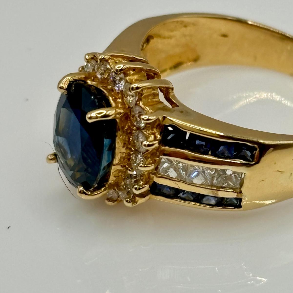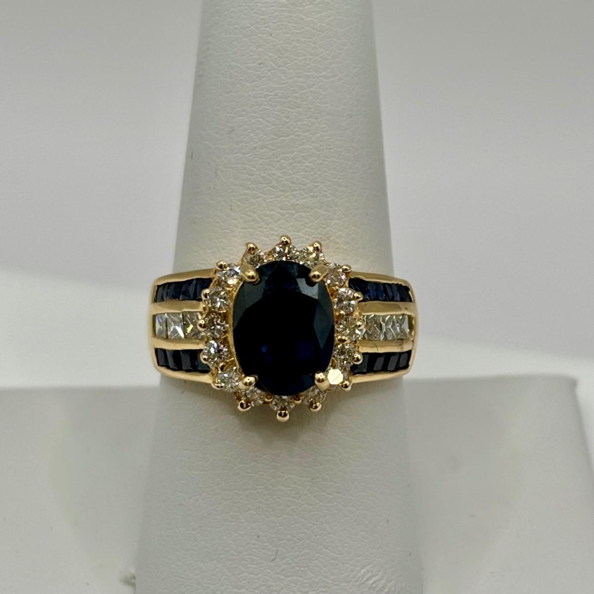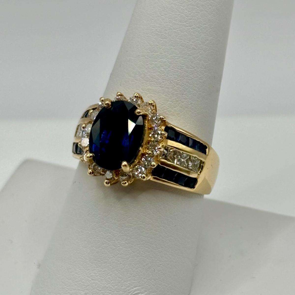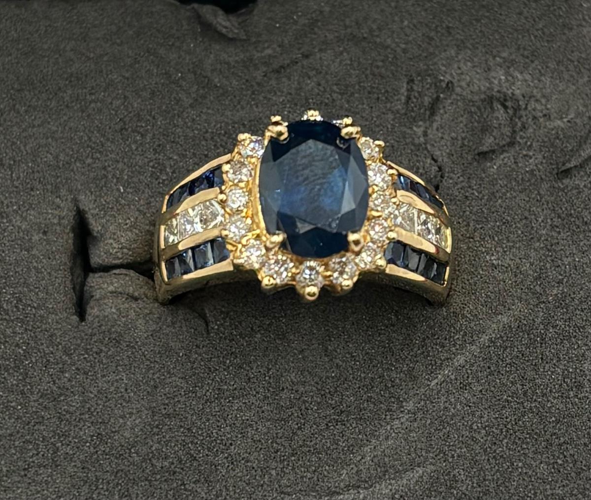 LOT 131: Natural Blue Sapphire & Diamond: 18KT Yellow Gold, sz8