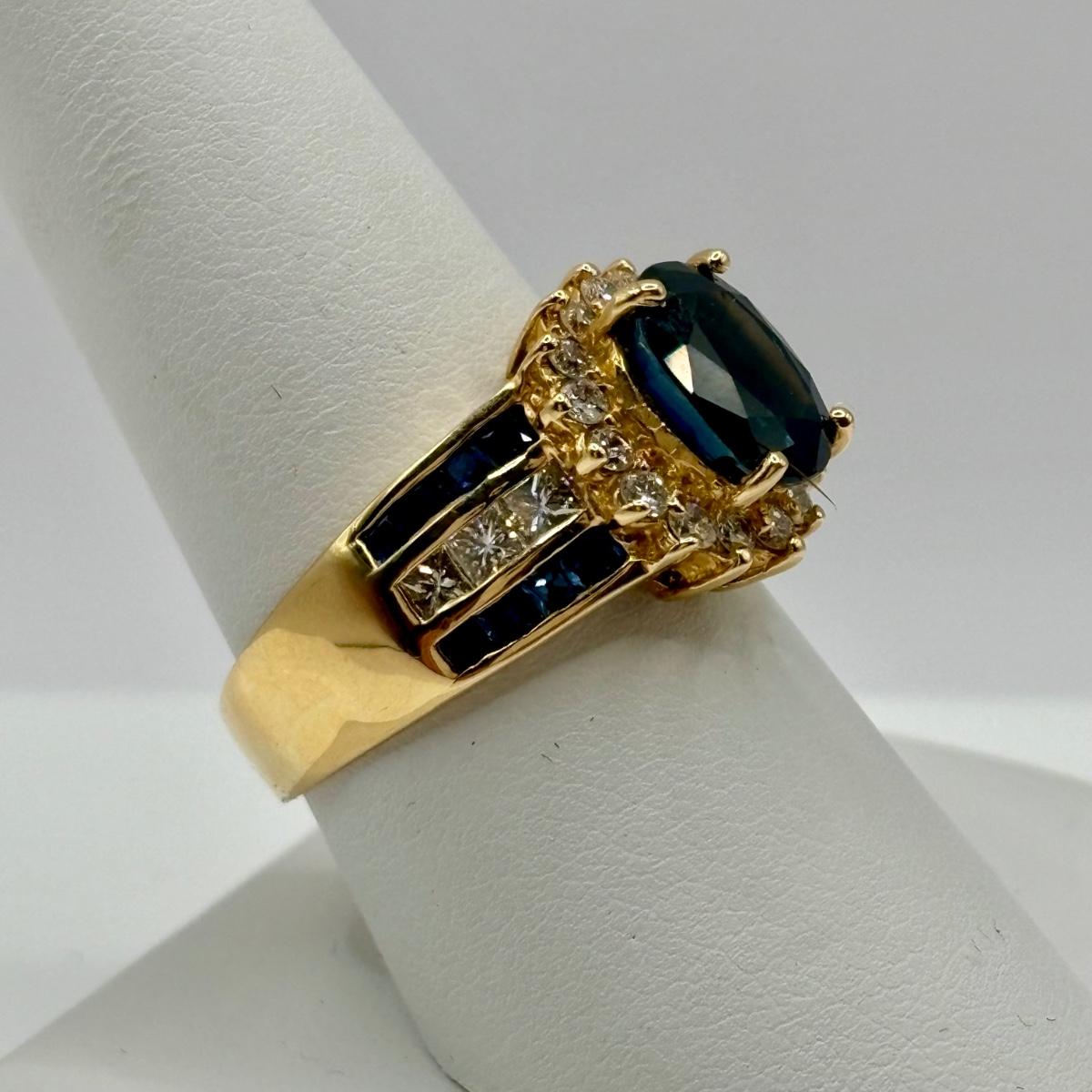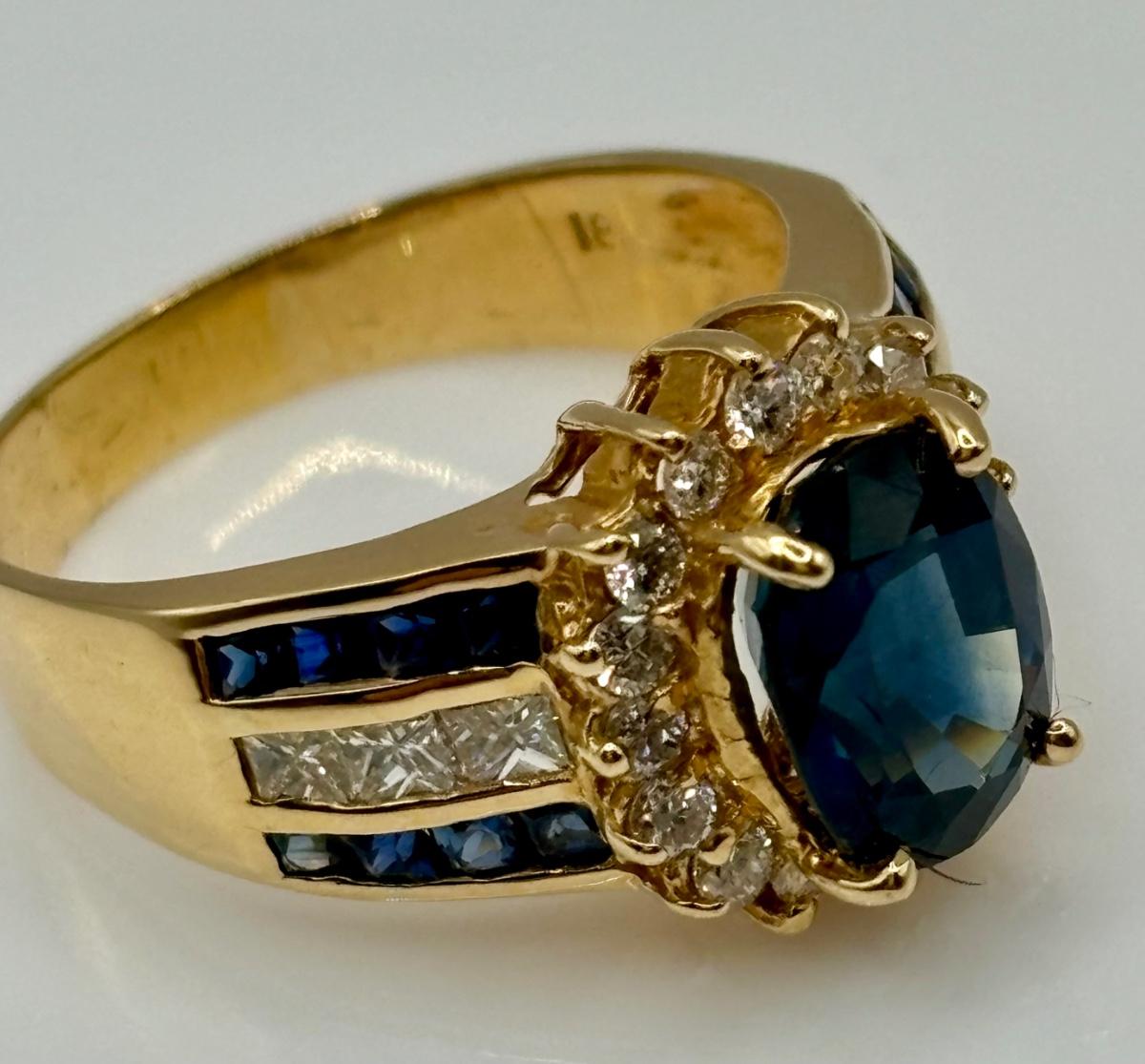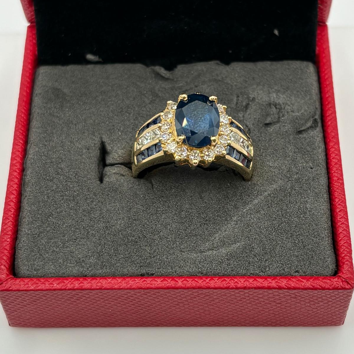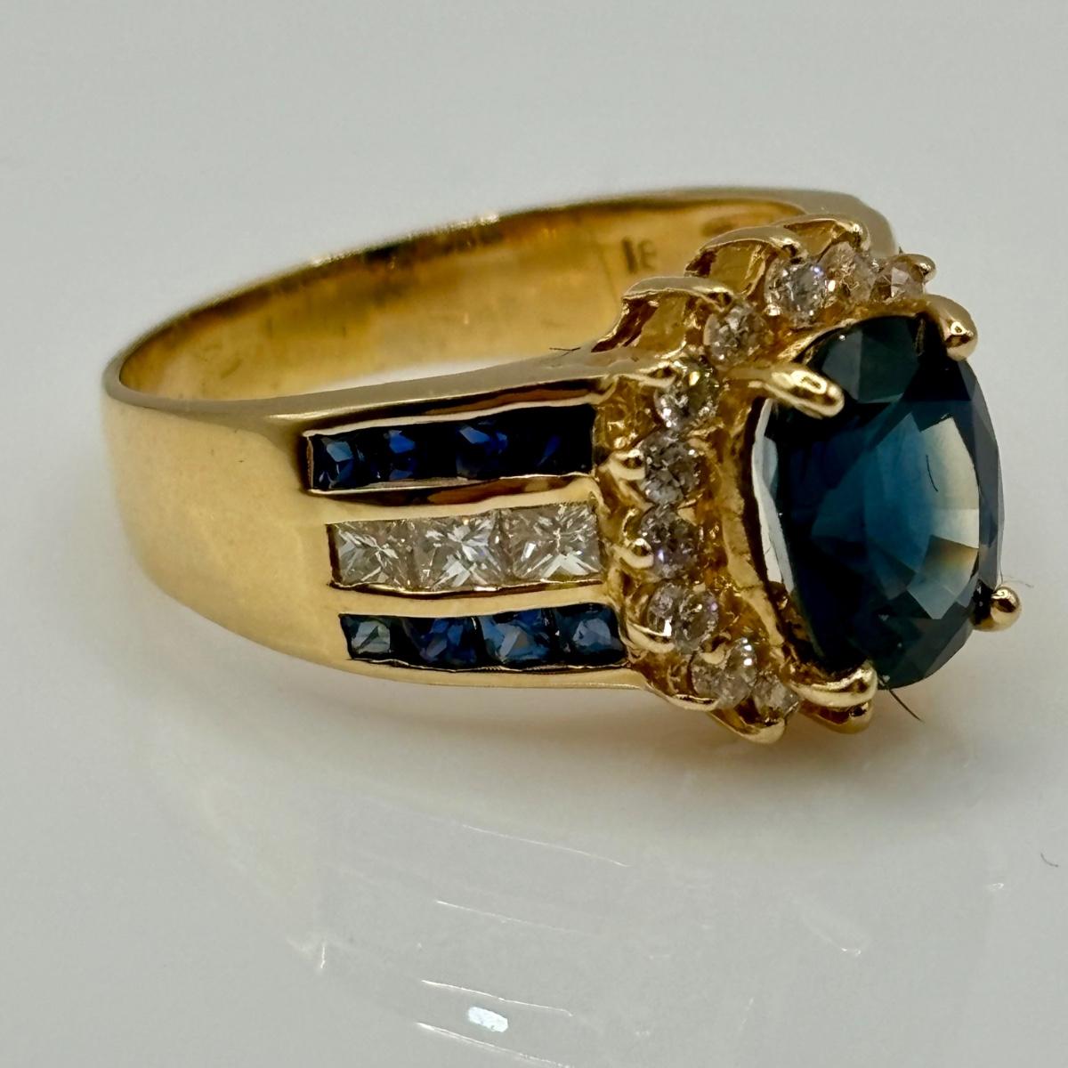 LOT 131: Natural Blue Sapphire & Diamond: 18KT Yellow Gold, sz8