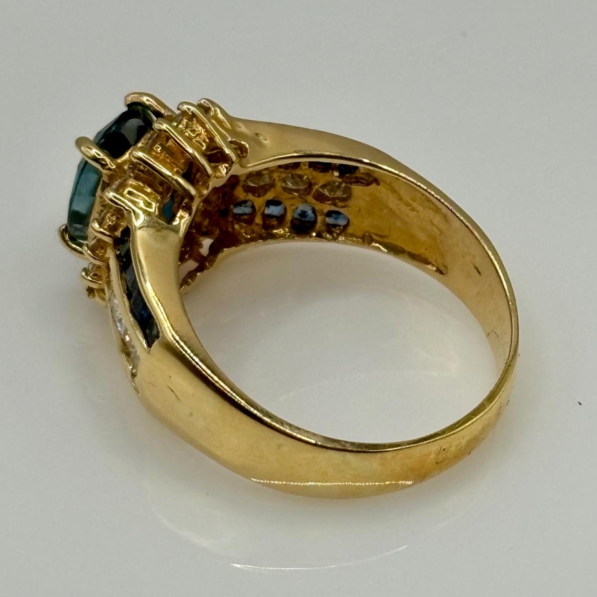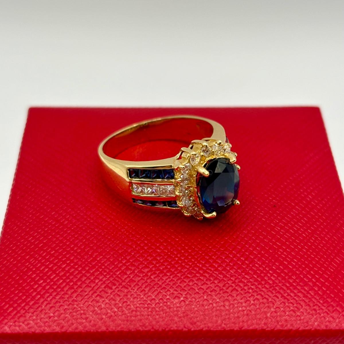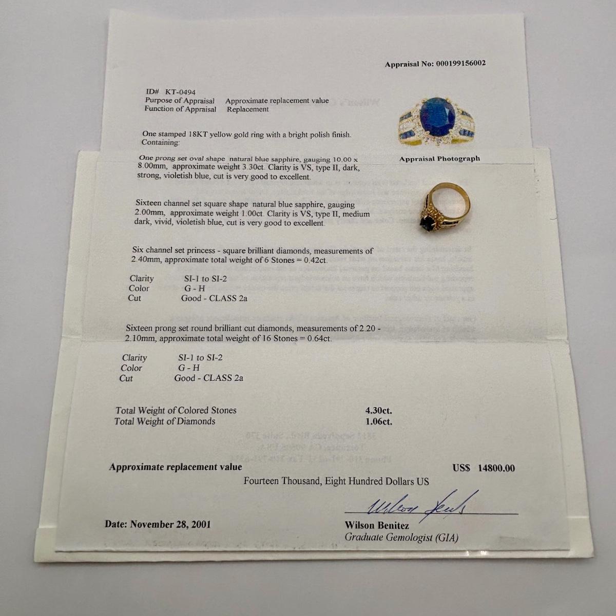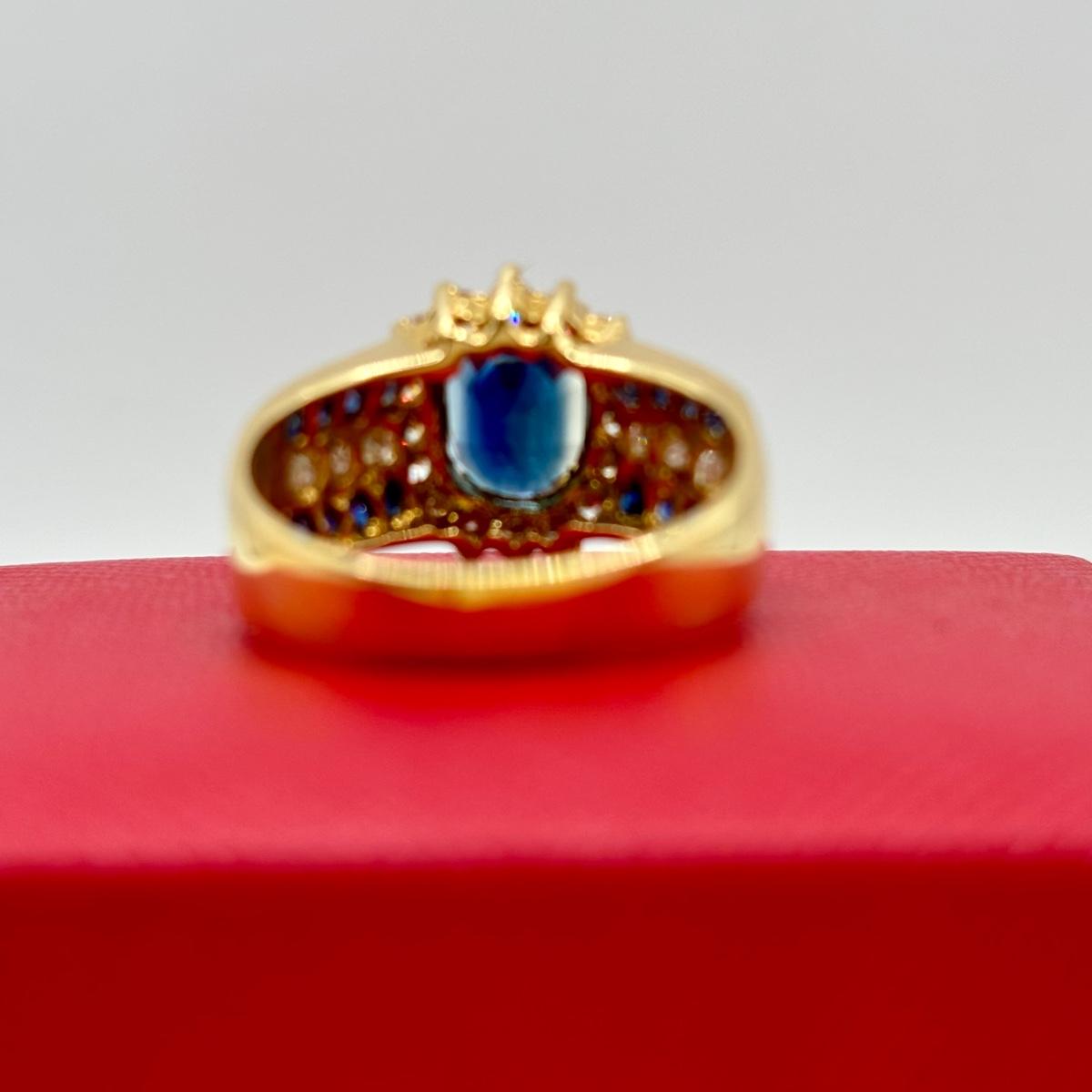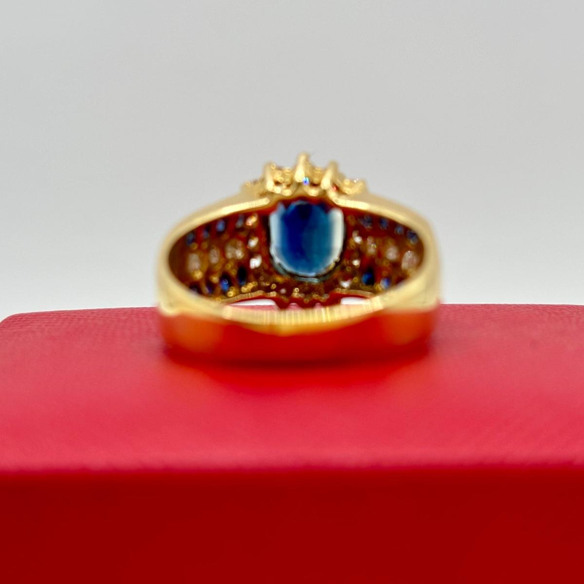 LOT 131: Natural Blue Sapphire & Diamond: 18KT Yellow Gold, sz8