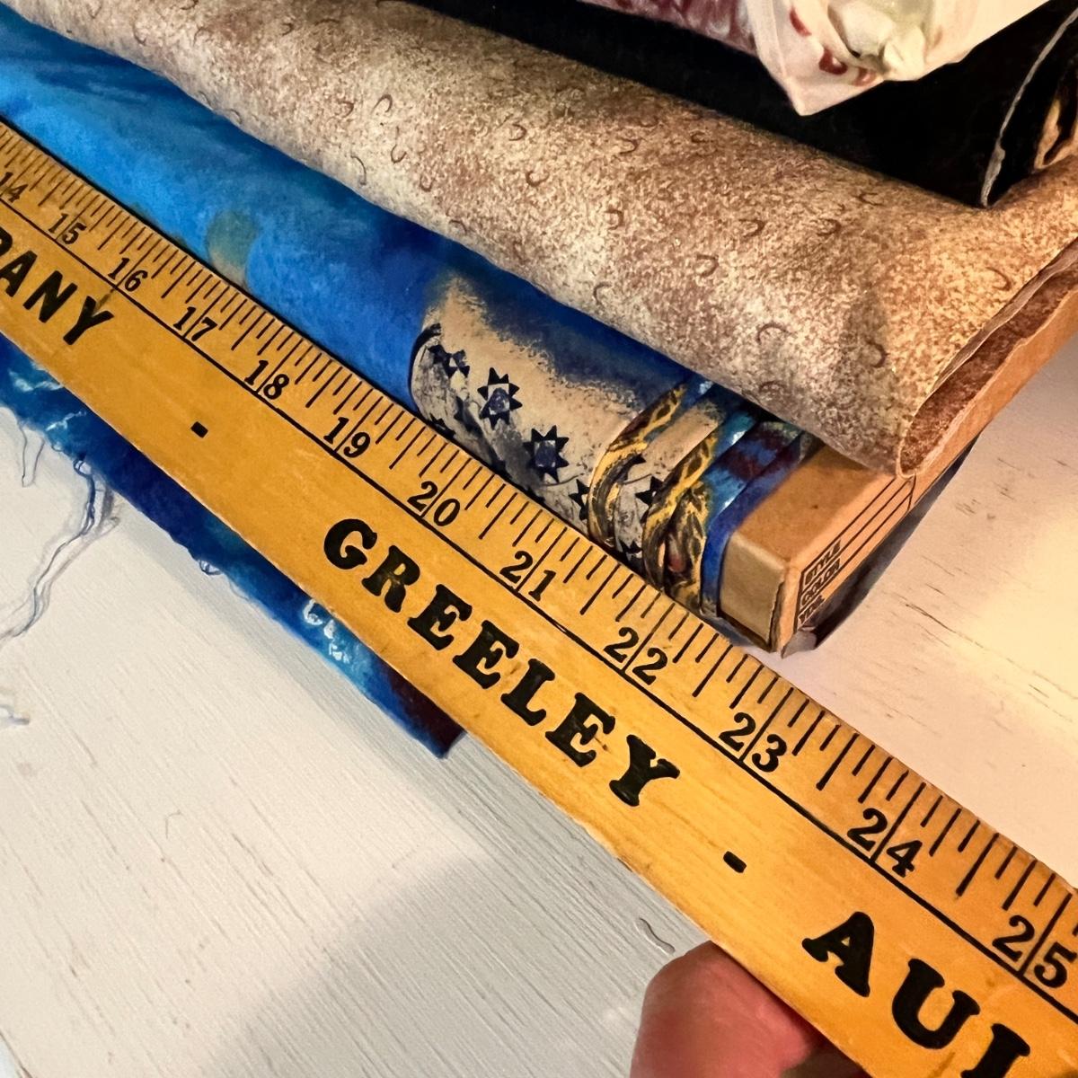8. Sizes are approximate, you can estimate as our lot number signs are 3.5" long. Also we use an 18" & 36" measuring stick.  We try on certain things to do actual measurements. No guarantees on actual sizes, we try our best!