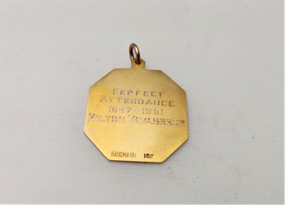 Lot #131 10kt Gold Perfect Attendance Award - St. Aloysius 1947-1951
