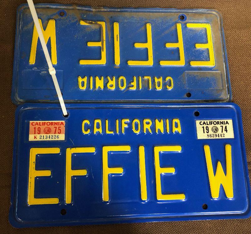 Lot #131 1974 California Personalized License Plate EFFIE W
