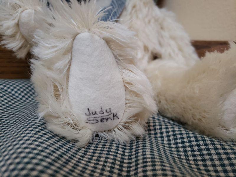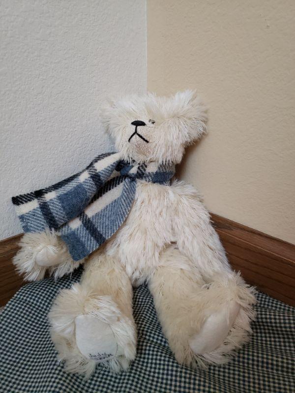 Lot 131: 2001 Judy Senk Bear with Blue Plaid Scarf
