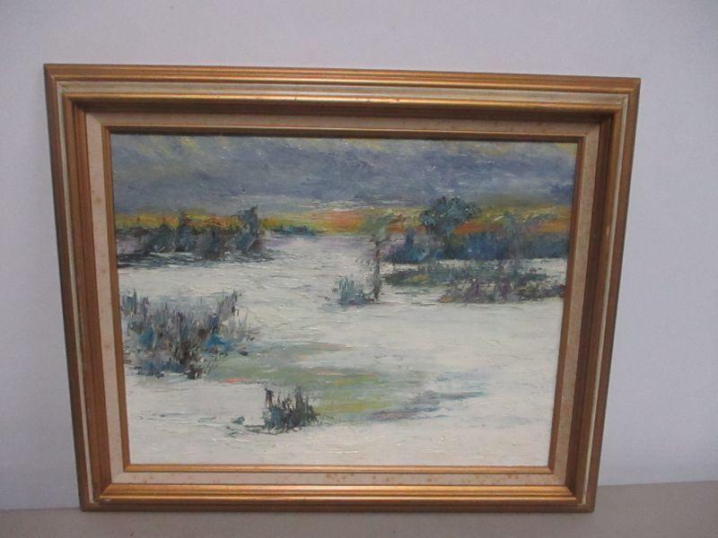 Please see pictures for condition frame does have some damage and picture may need cleaning - may have foxing - Size approx 22 x 18