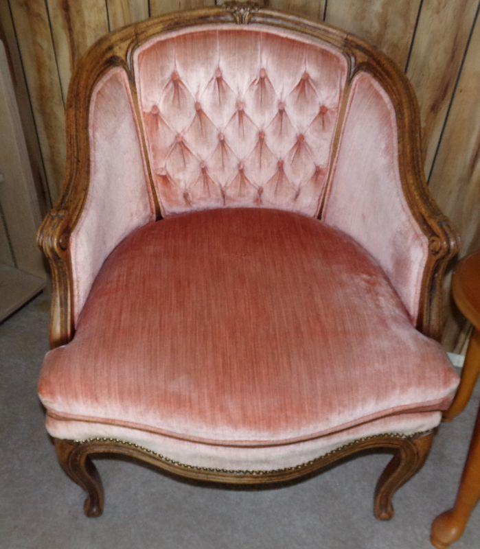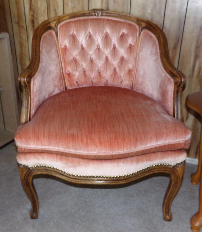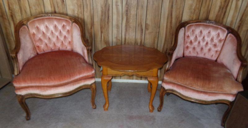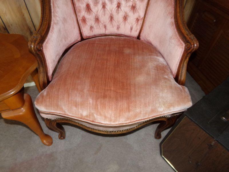DUSTY ROSE COLORED CHAIRS ARE SOMEWHAT FADED FROM THE SUN.
