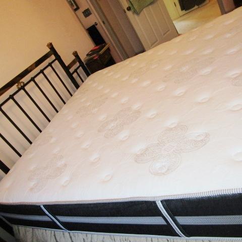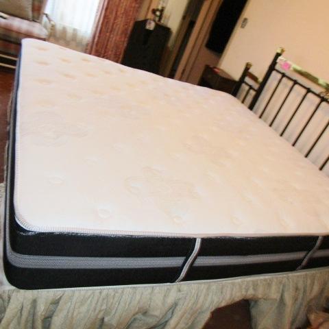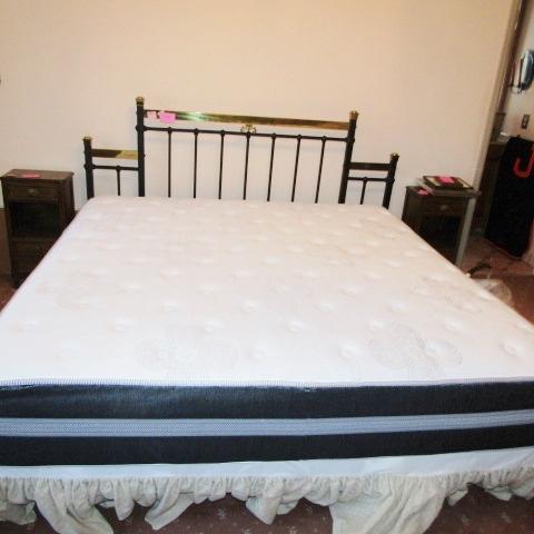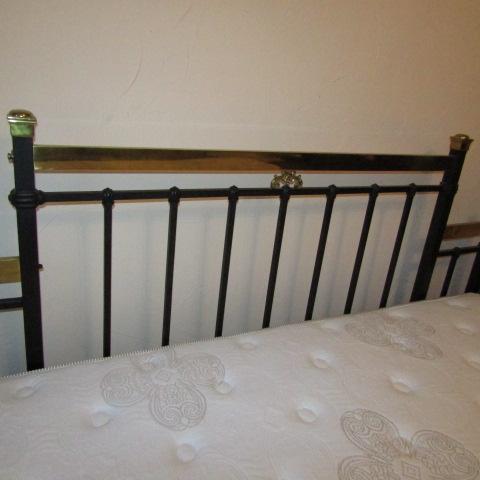 LIKE NEW "DREAM SMART" MATTRESS SET WITH IRON AND BRASS HEADBOARD AND FRAME 74" X 47"