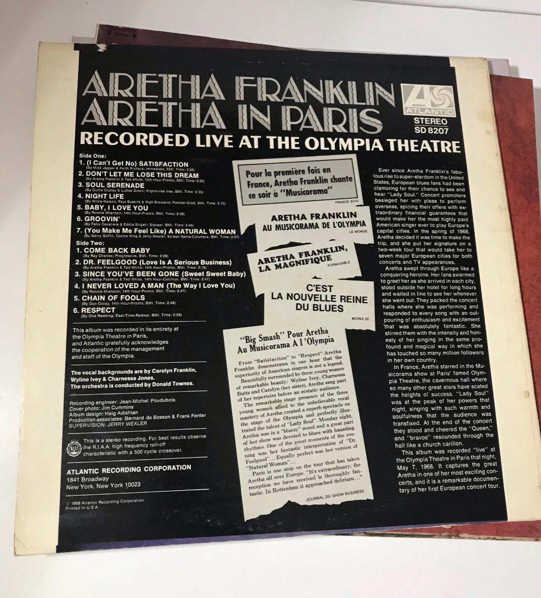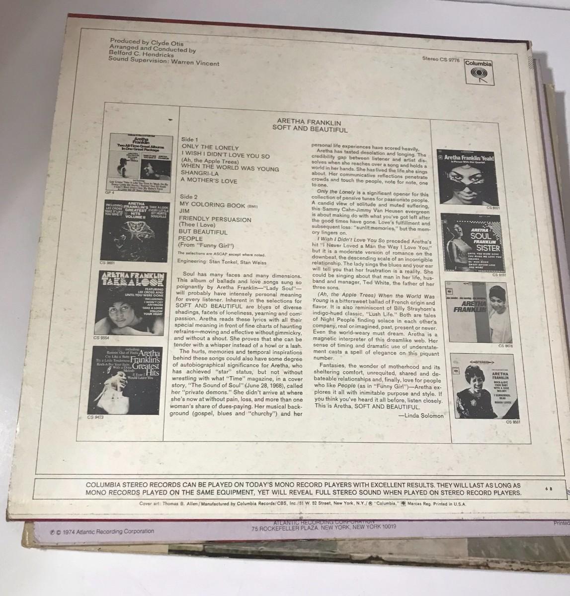 Collection of six Aretha Franklin Albums includes two copies of Amazing Grace double album, one of which has some mold damage inside cover. The pictures show condition, measurements if taken, and what is included in the lot. Due to the large amount that we photograph and the time frame, we are not always able to take measurements. All items unless noted, are pre-owned and have been used. If you purchased furniture, you must bring help. We do not allow one person to carry large furniture out on their own. Bring help, tools and a truck for the safety of our client’s homes, and your personal safety. Company policy. Thank you.