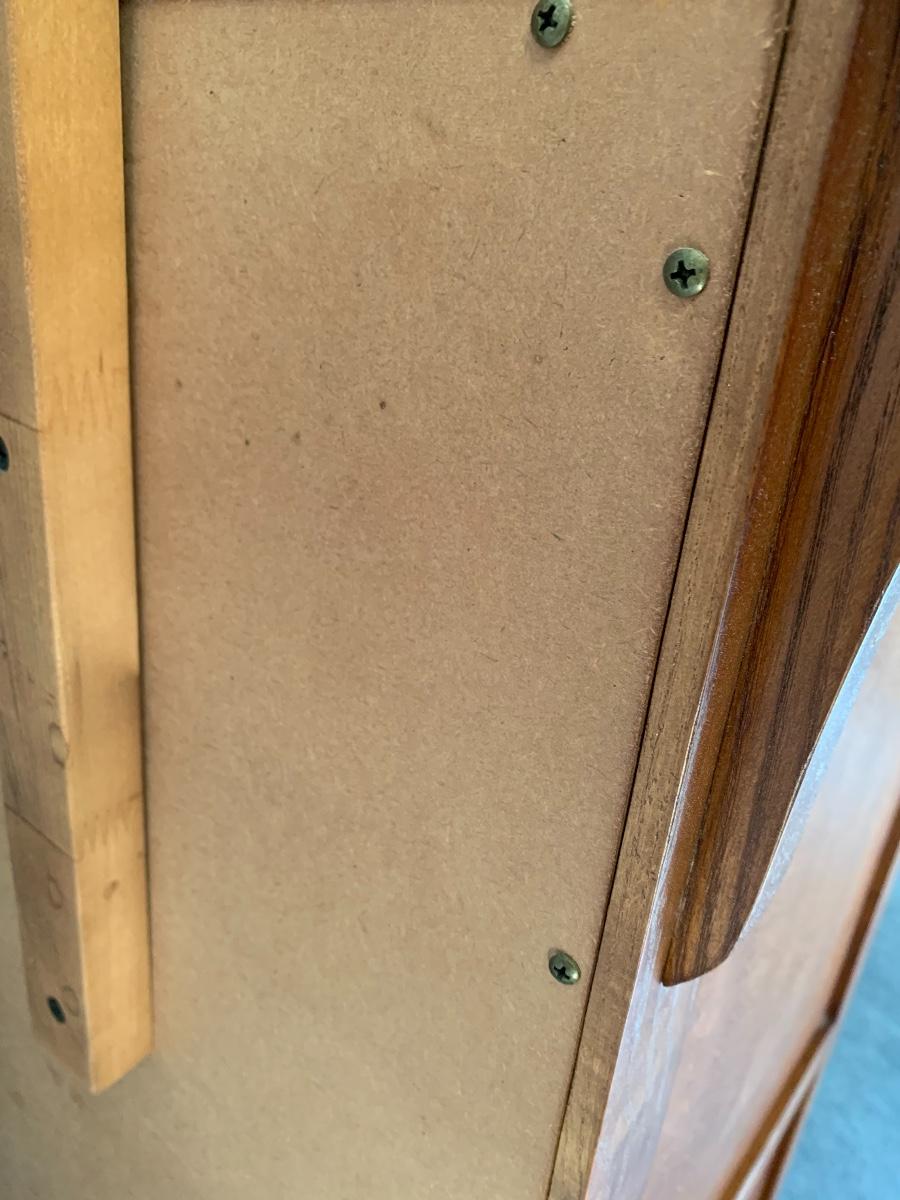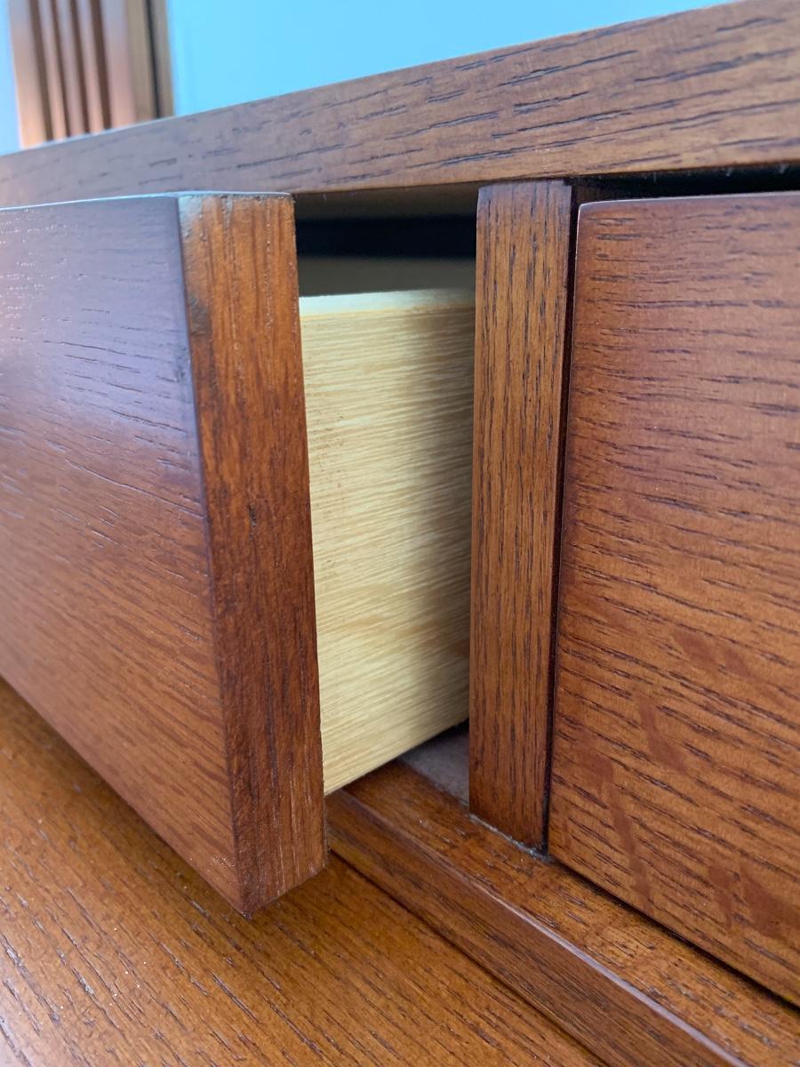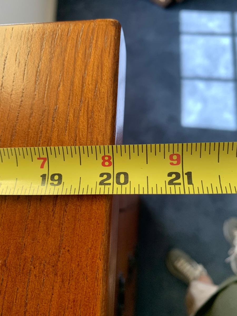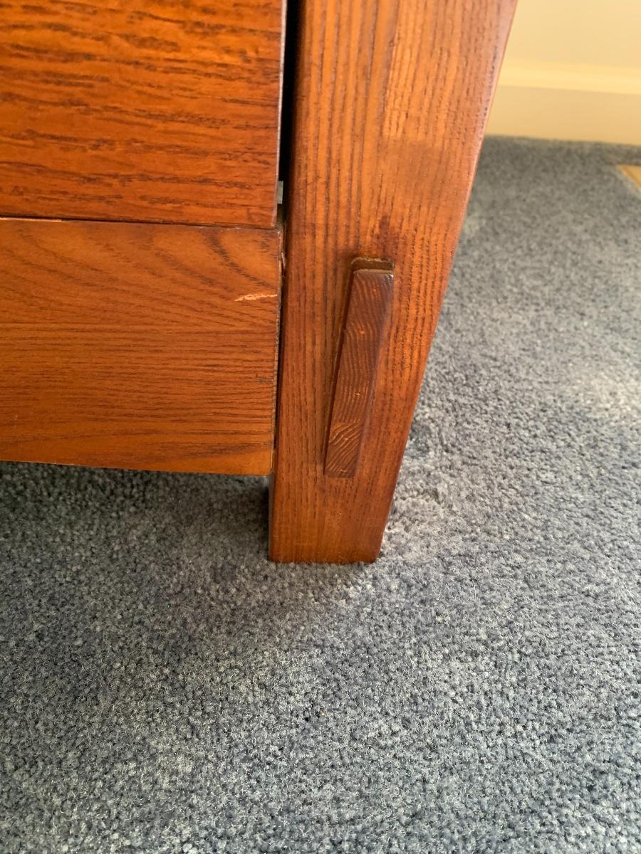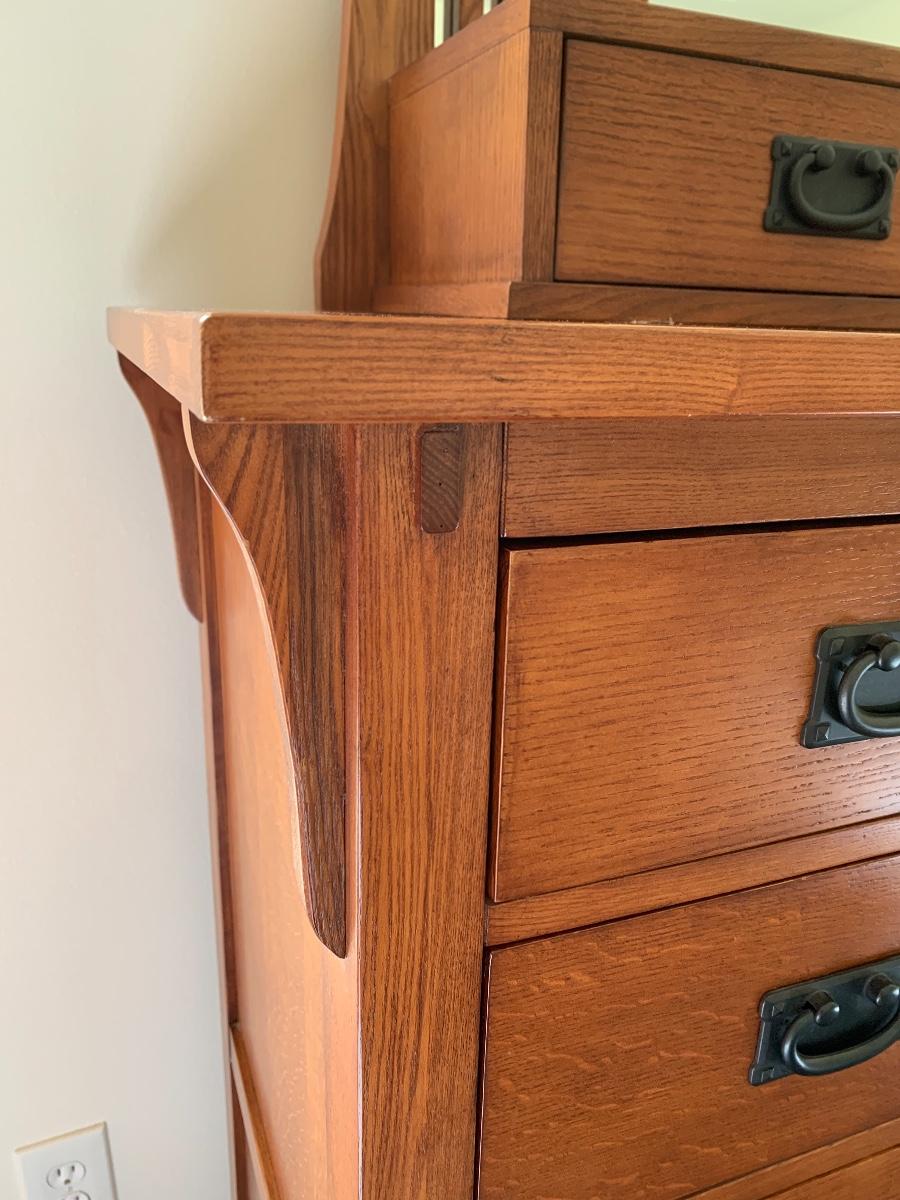 Oversized dress with a cedar lined center cabinet: oak colored.. This is a large piece of furniture help will be needed to move. Tons of storage and function along with style.
