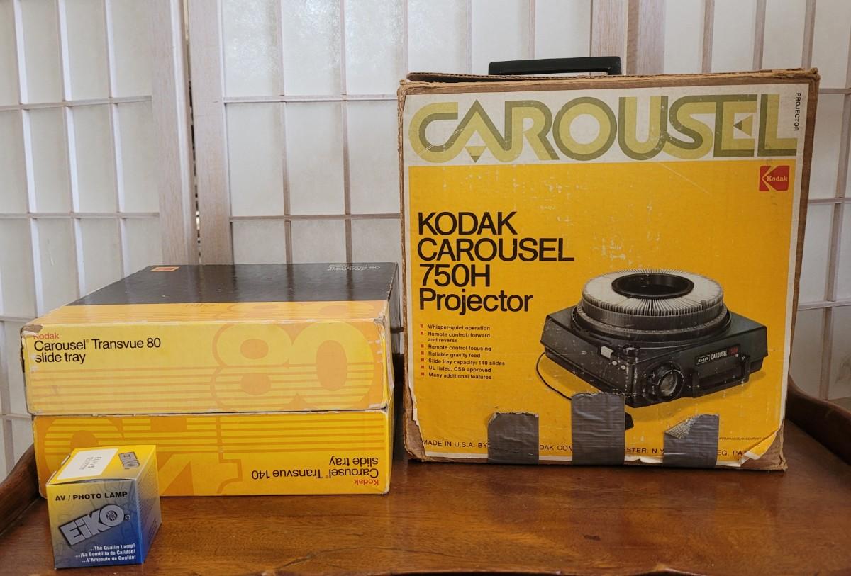 Lot 131: Vintage Kodak 750H Projector with Manual, 3 Carousels, Projection Lens and Bulb