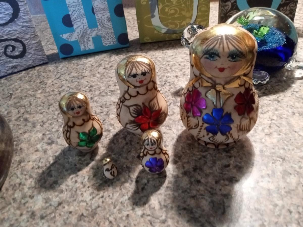 LOT 131  GLASS TURTLE, NESTING DOLLS AND MORE