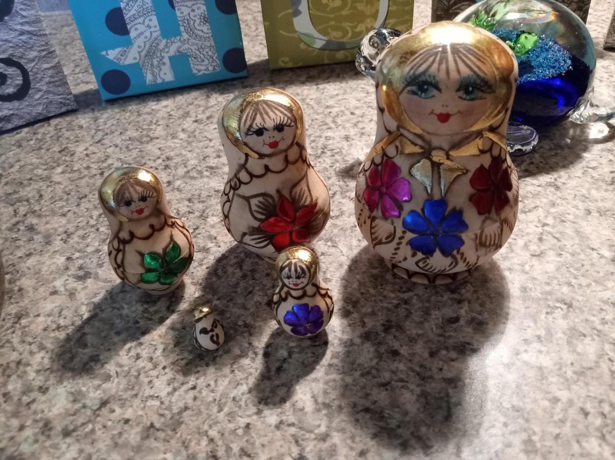 LOT 131 GLASS TURTLE, NESTING DOLLS AND MORE
