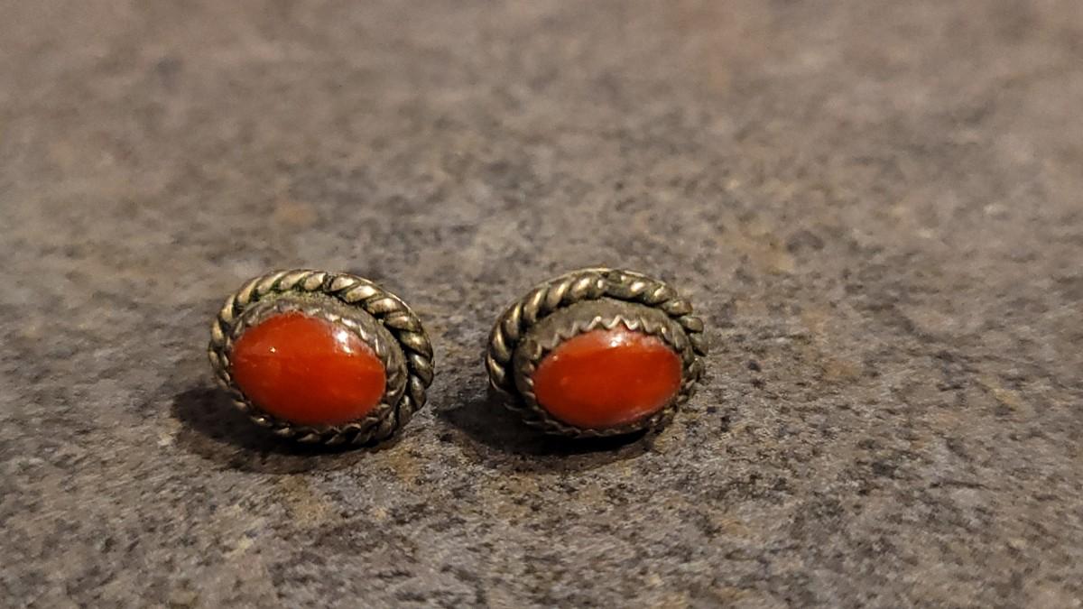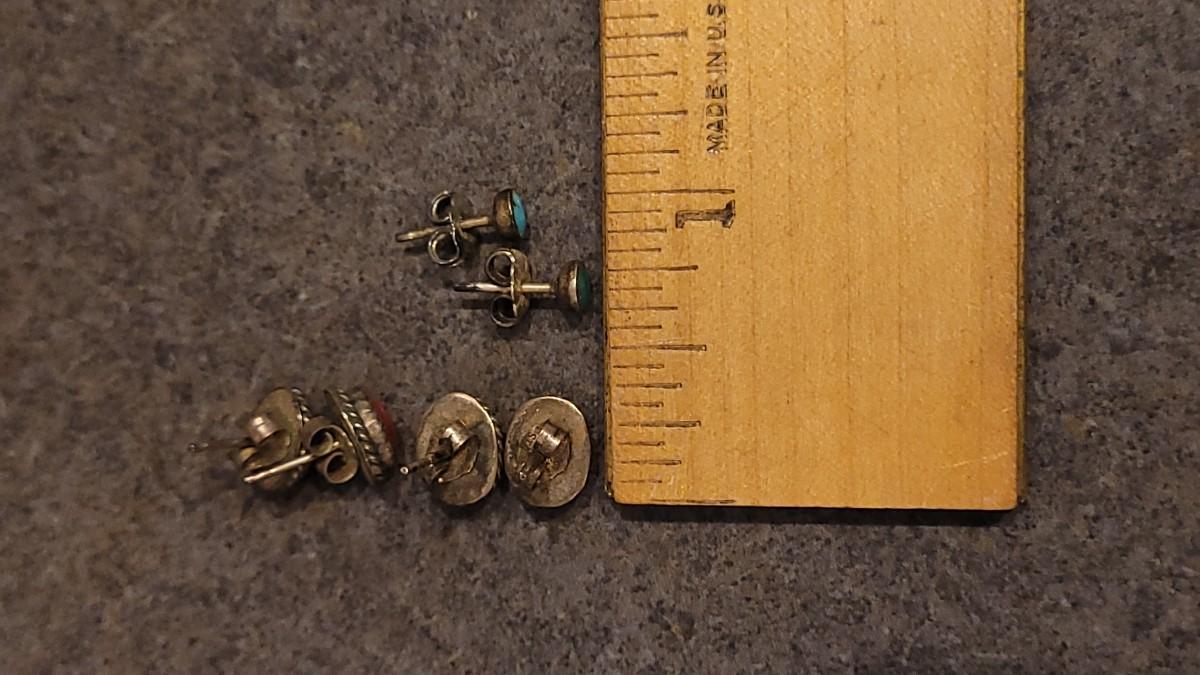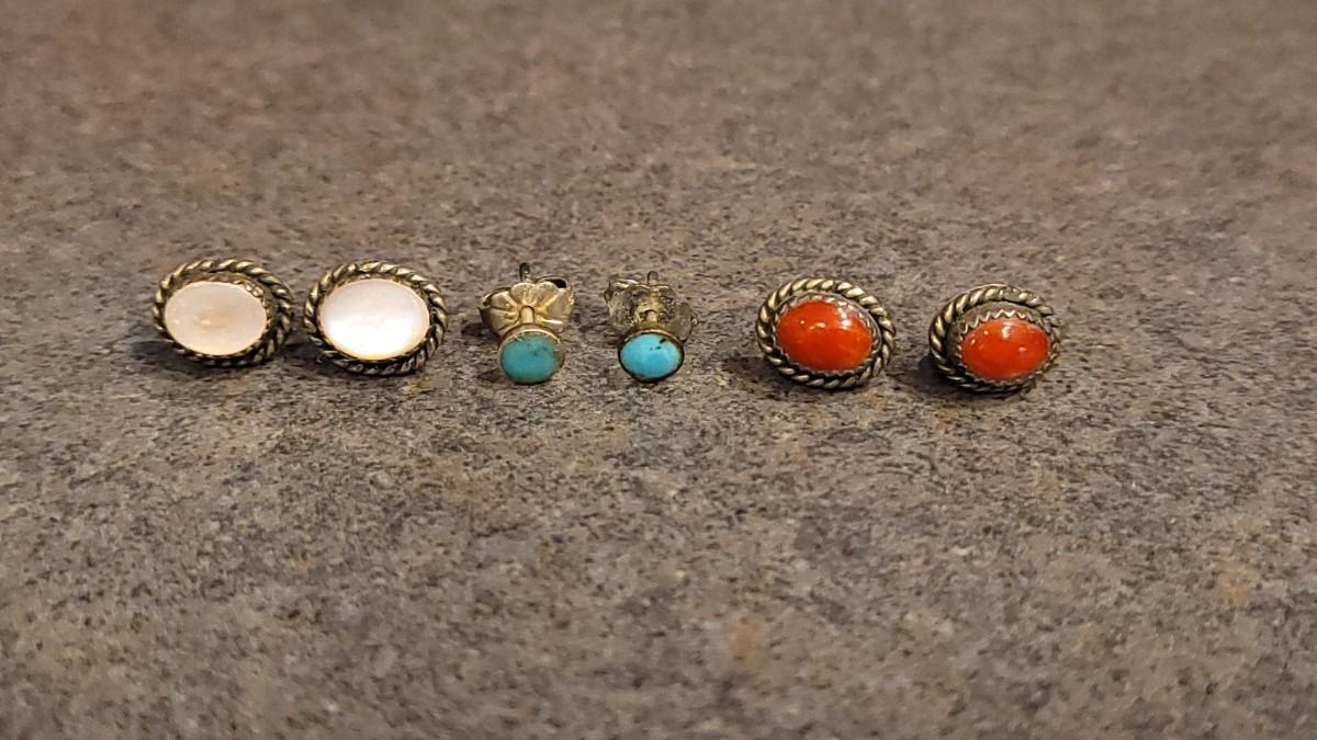 Lot 131: Mother of Pearl, Coral and Turquoise Sterling Earrings