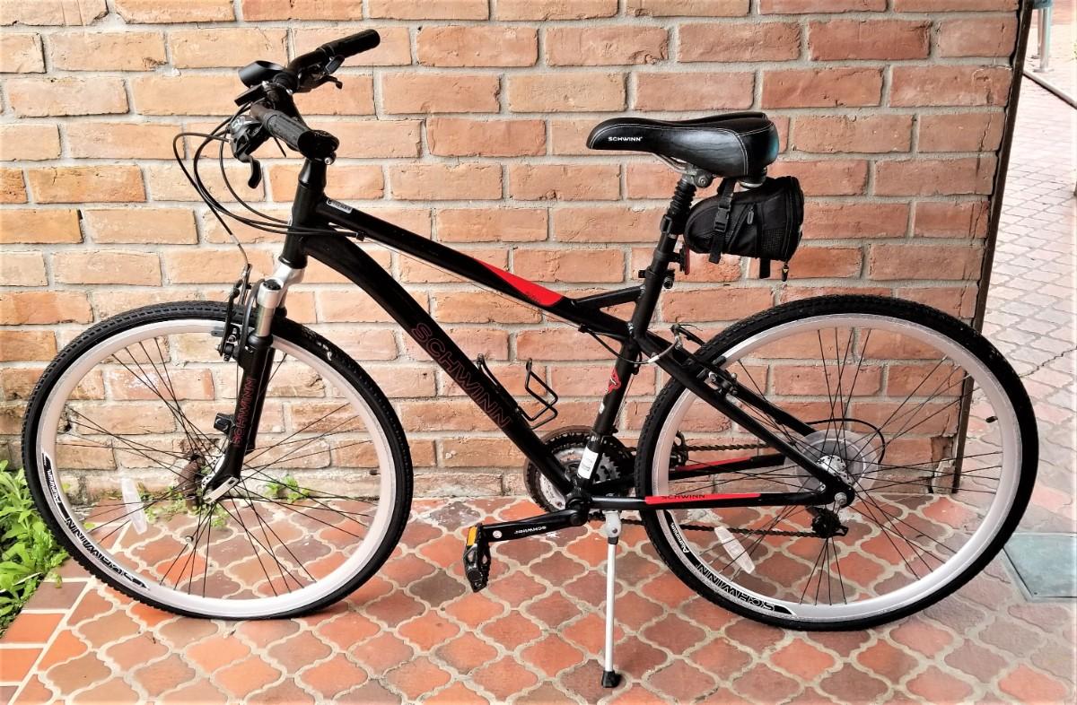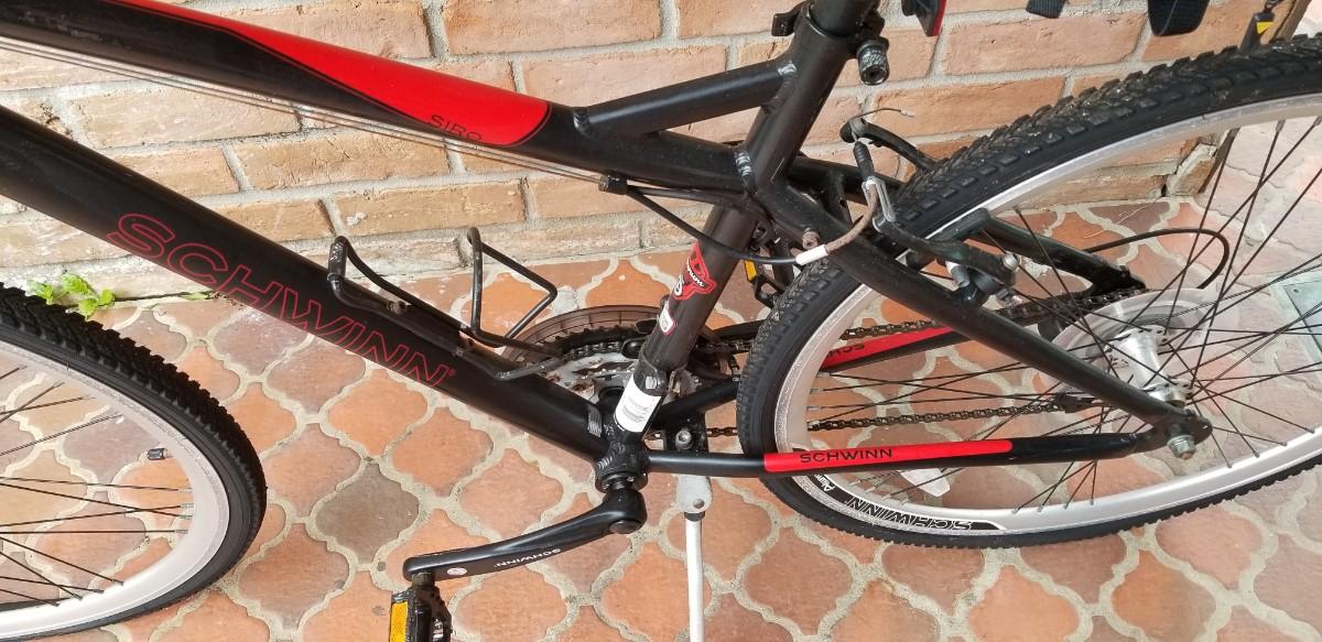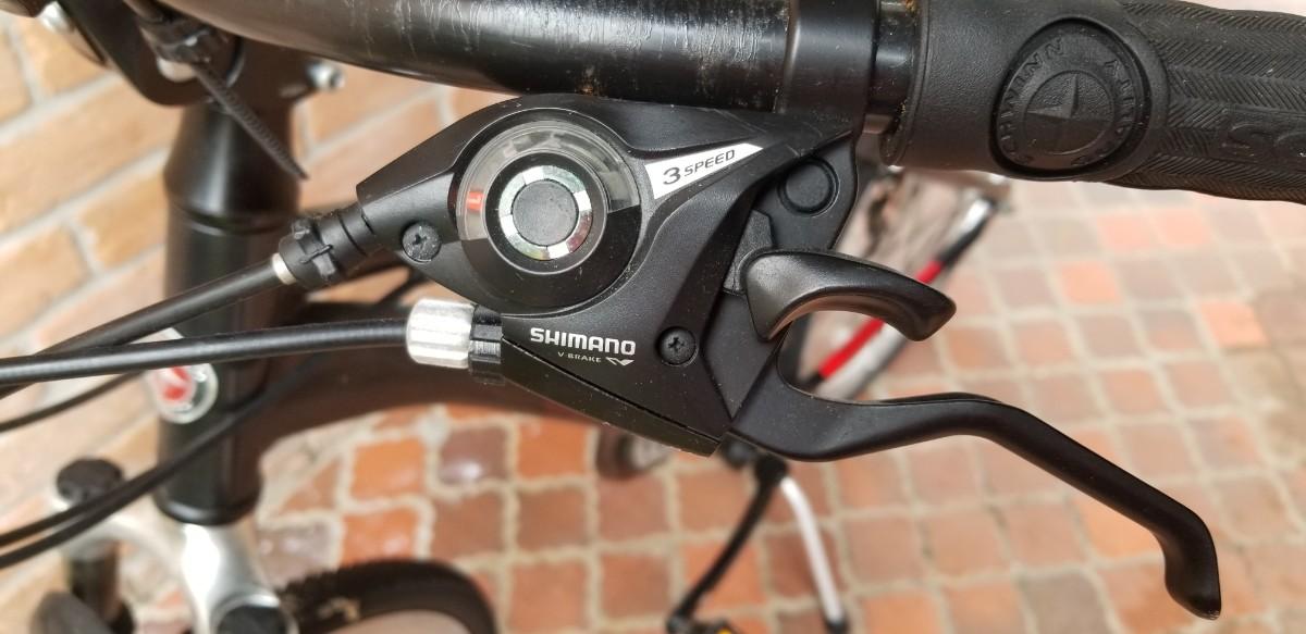 Aluminum Schwinn Shimano Bicycle, comes with tire repair kit. Garage kept - both tires flat V brake - 3 speed. Photos are part of the description, so make sure to look at them all.