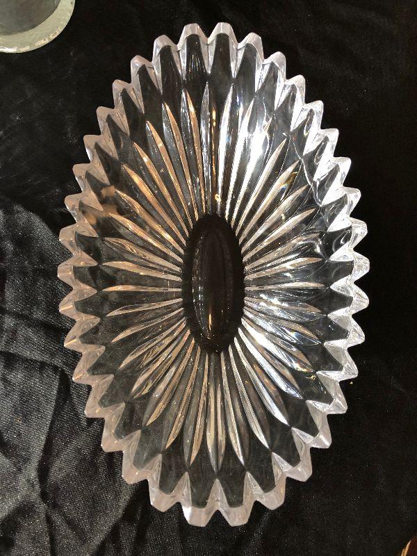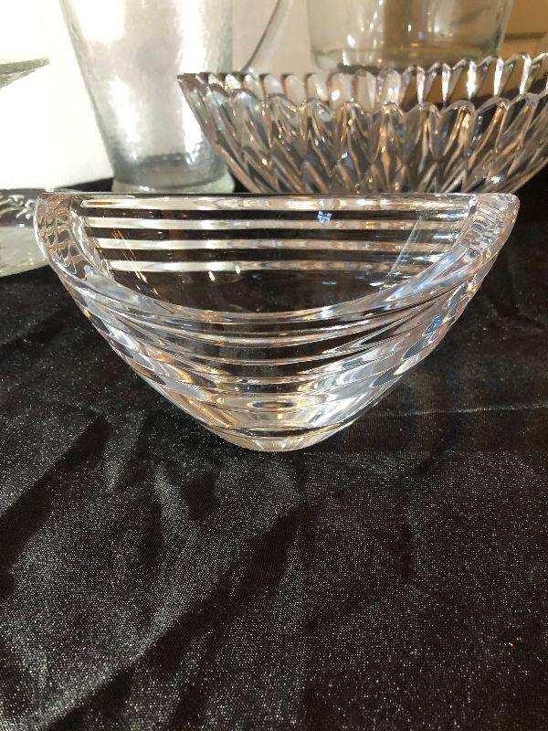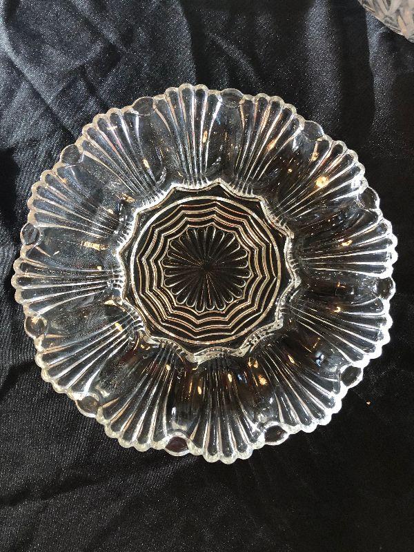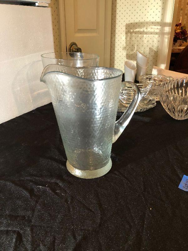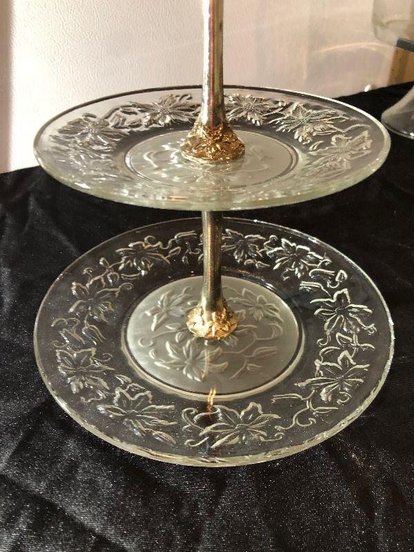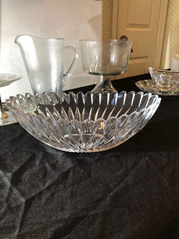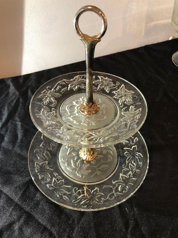 Assortment of Crystal and Glass Pieces (Some Vintage) including an American Brilliant Bowl, a 2 Tier Tray, a Truffle Bowl, a Pitcher and Other Fine Decorative Serving Pieces..