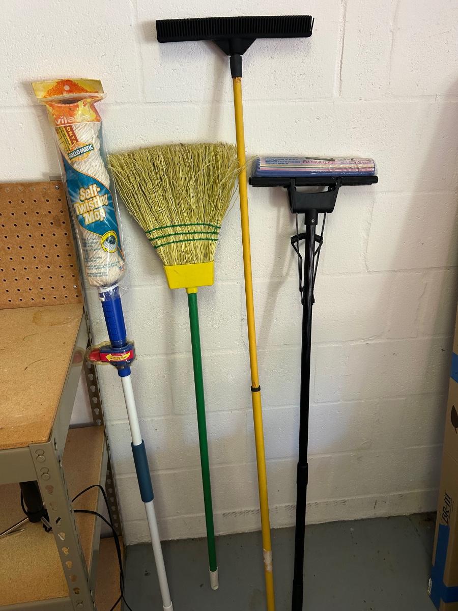 broom, squeegee bristle brush, adjustable handle sponge mop and self-twisting mop