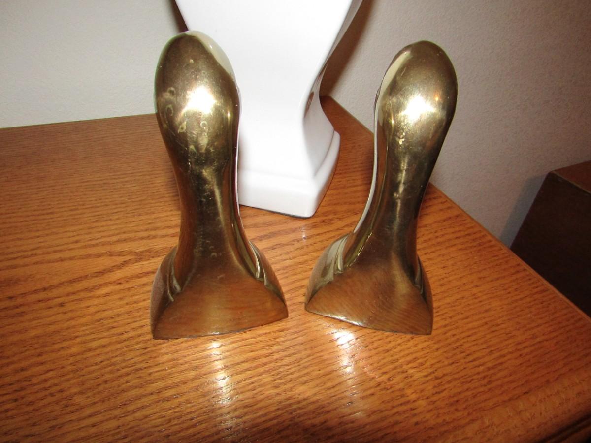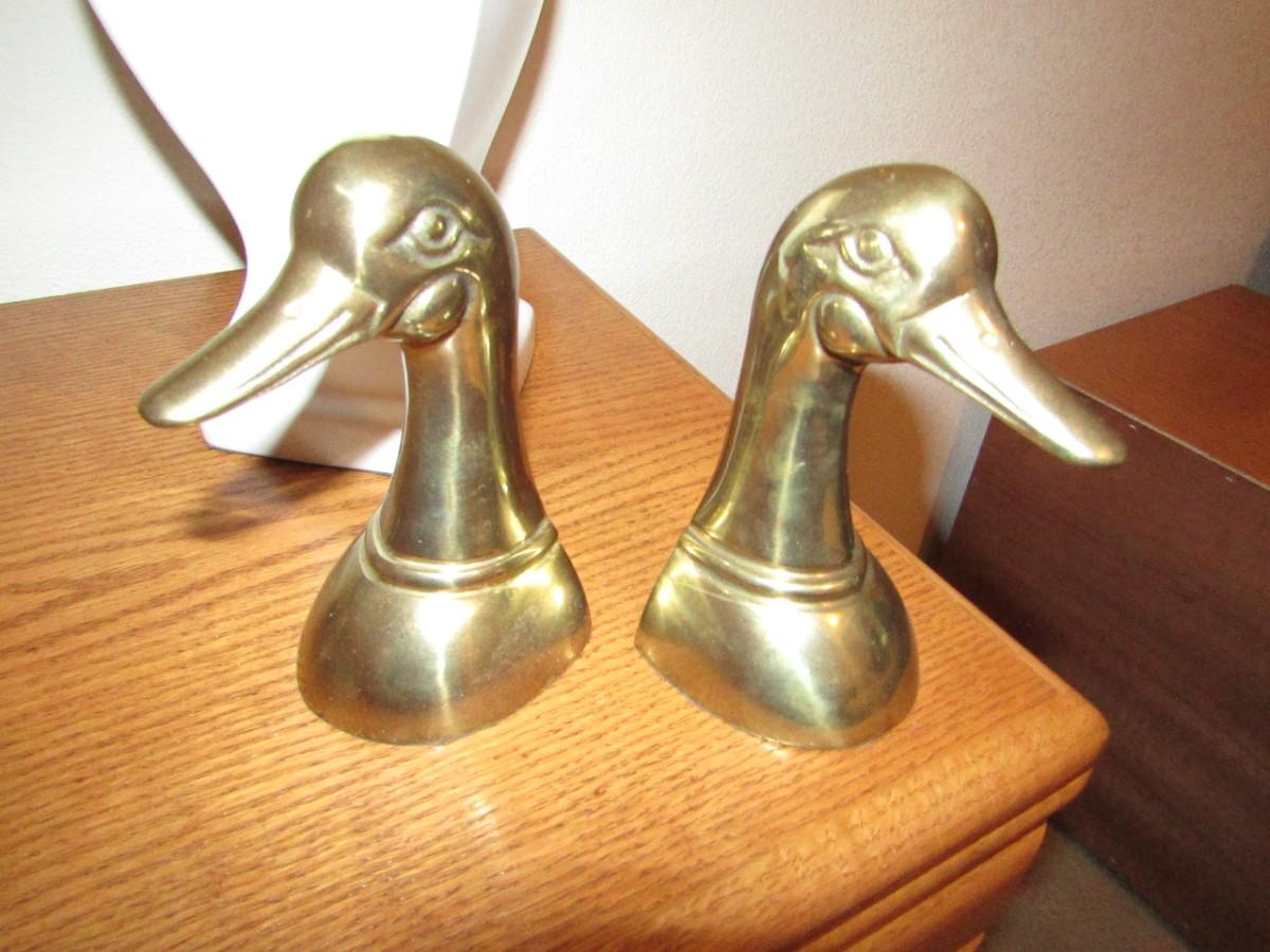 LOT 131 BRASS DUCK BOOKENDS, 2 POTS AND A TABLE LAMP