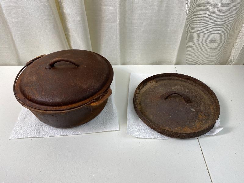 Lot# 131 Cast Iron Lot Early Lid Cracked 5 Quart Dutch Oven Taiwan Cooking Kitchen