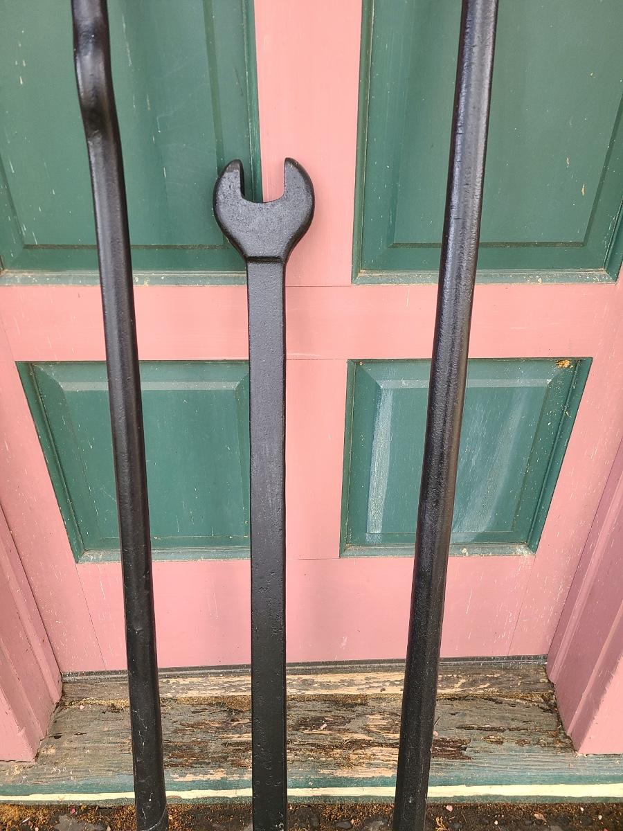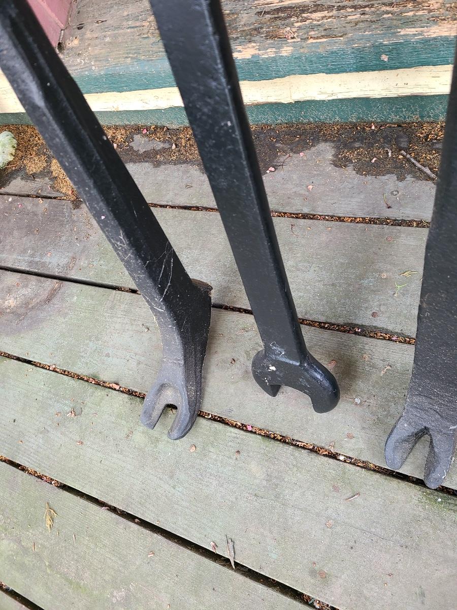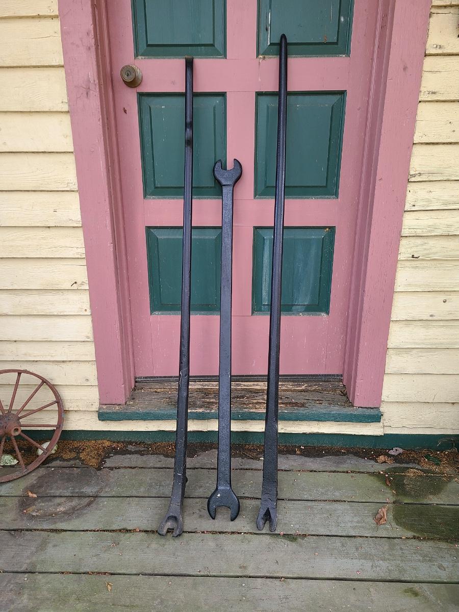This lot is for the three large black metal HEAVY railroad tools. Not sure of the age of these. The metal wheel is not included. Please see all pictures as they are the best representation of the items. The pictures show condition, measurements if taken, and what is included in the lot. Due to the large amount that we photograph and the time frame, we are not always able to take measurements. All items unless noted, are pre-owned and have been used. If you purchased furniture, you must bring help. We do not allow one person to carry large furniture out on their own. Bring help, tools and a truck for the safety of our client’s homes, and your personal safety. Any damages that result to the property including walls, and floors due to moving of the furniture will be charged to the buyer. Company policy. Thank you.