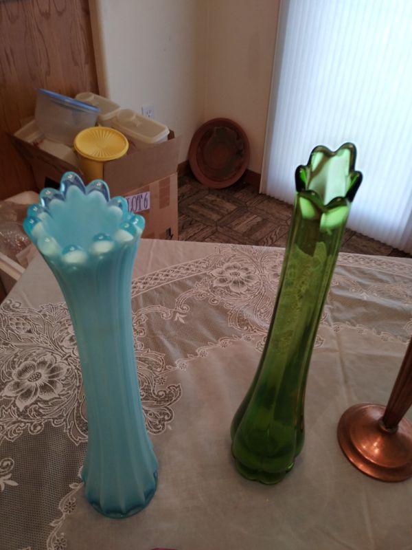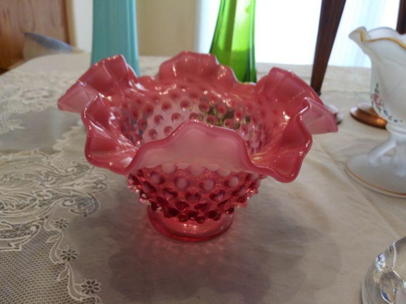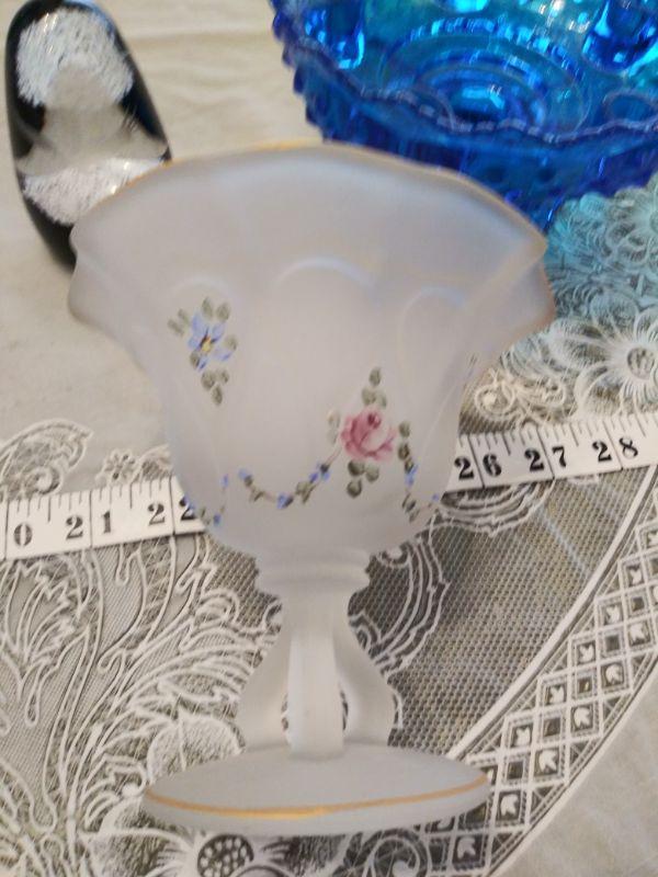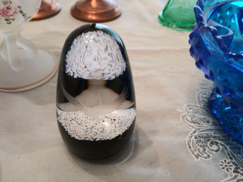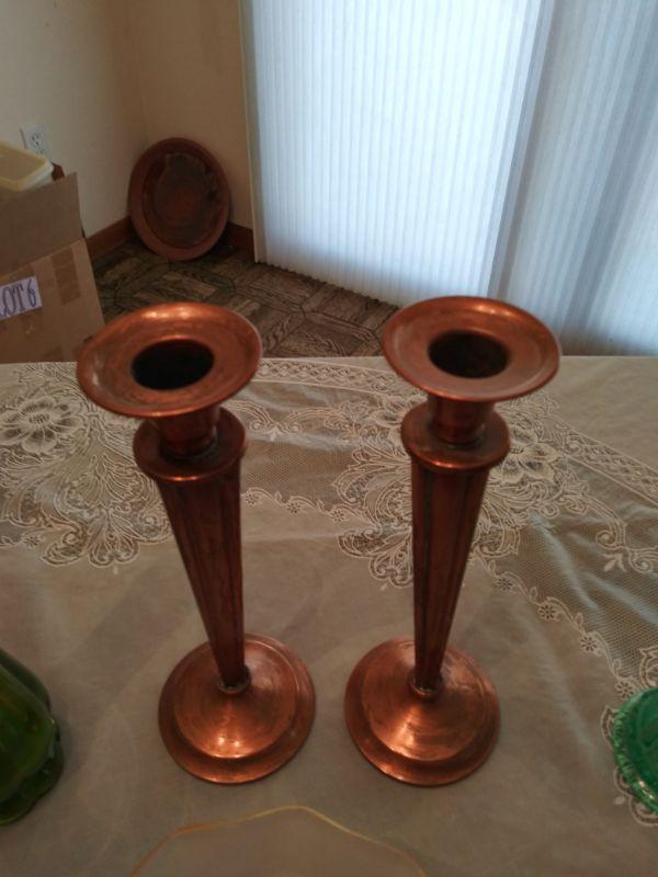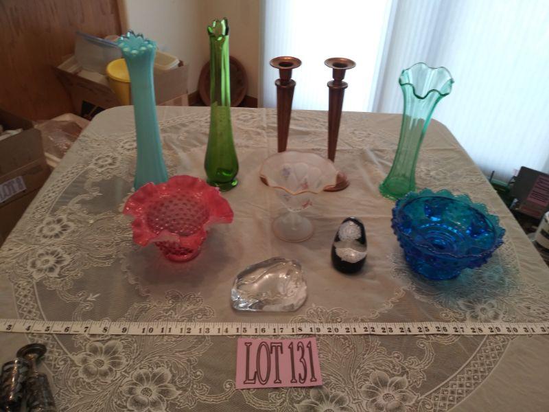 FENTON, ANTIQUE COPPER CANDLE STICKS, 2 PAPERWEIGHTS HAND-PAINTED CANDY DISH AND MOE