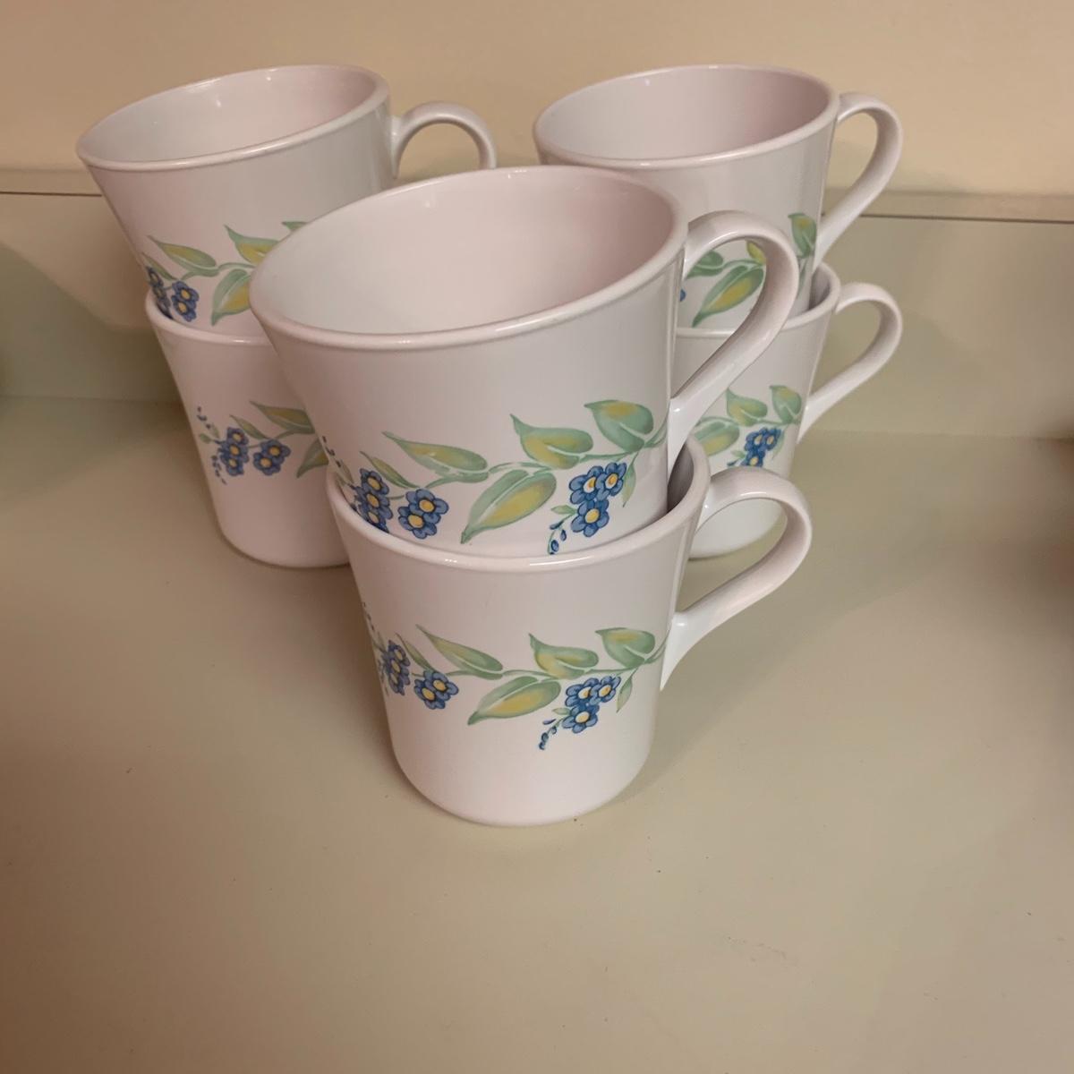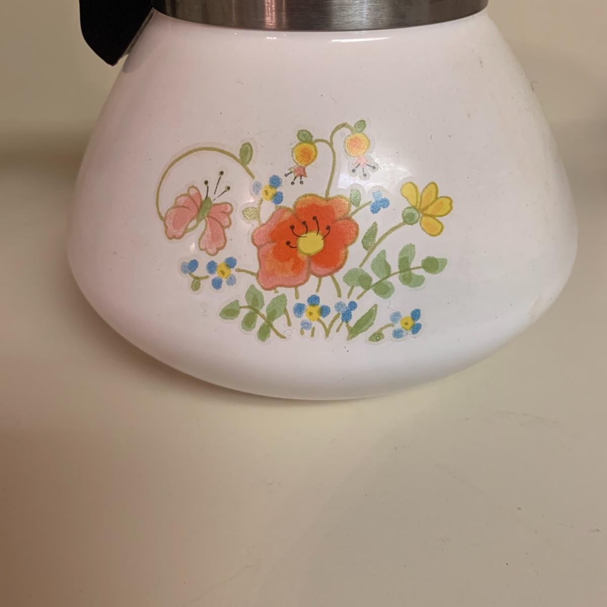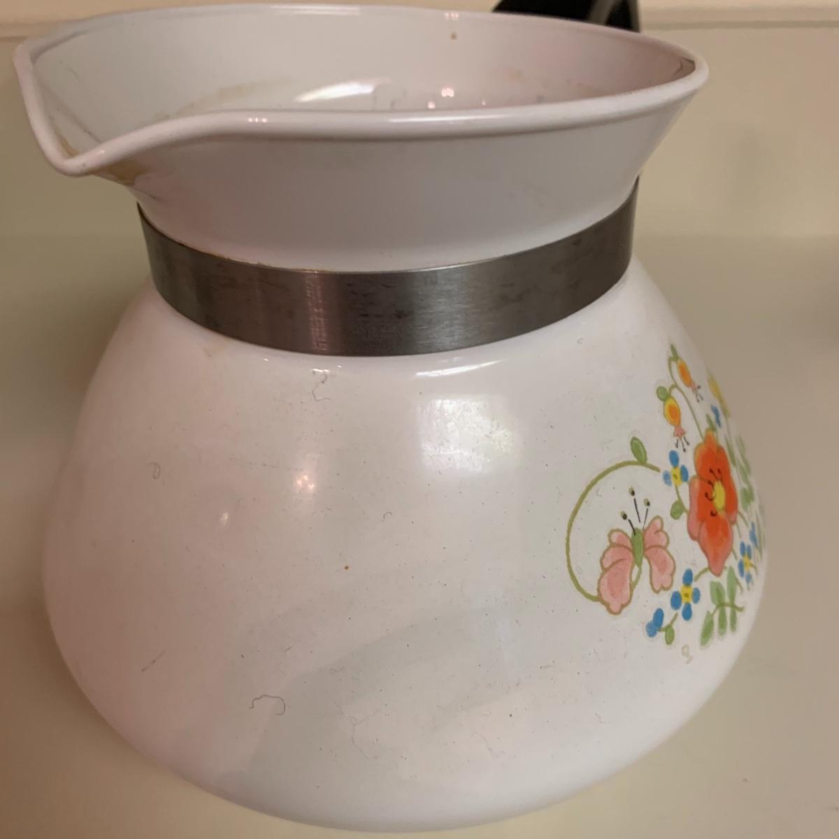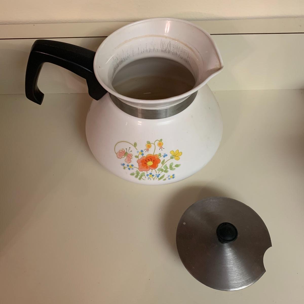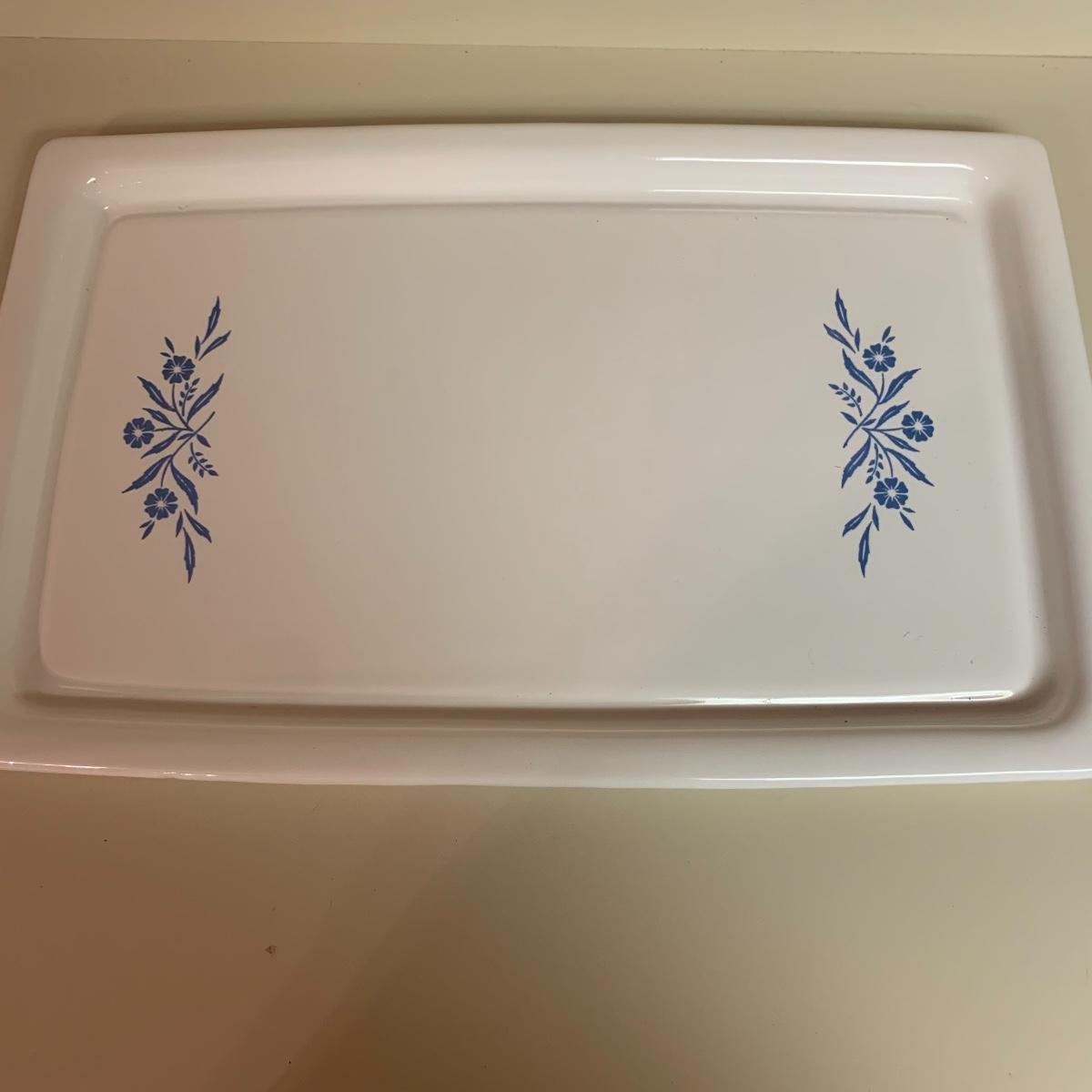 This lot includes 3 miscellaneous casserole dishes with lids, a set of 3 casserole dishes with lids, a set of 6 teacups, a set of 2 teacups, a coffee pot with two lids, casserole dish holders, and more. The coffee pot has staining at the bottom. Everything in this lot is Corning brand. The largest casserole dish measures about 12in x 10in. The serving plate measures about 16in x 10in without the holding rack.