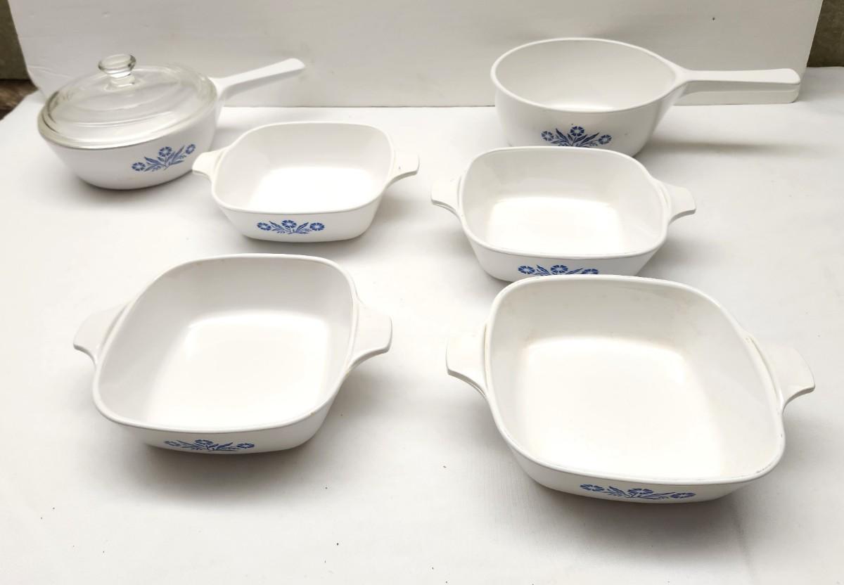 Cornflower pattern Corning Ware lot - you get all you see here. All have been used.