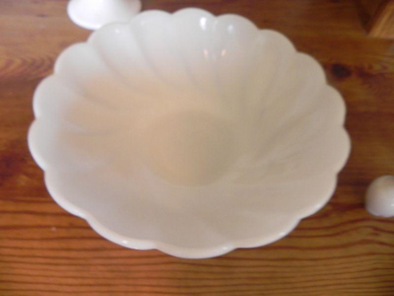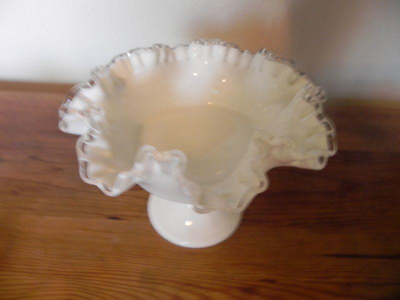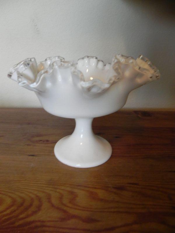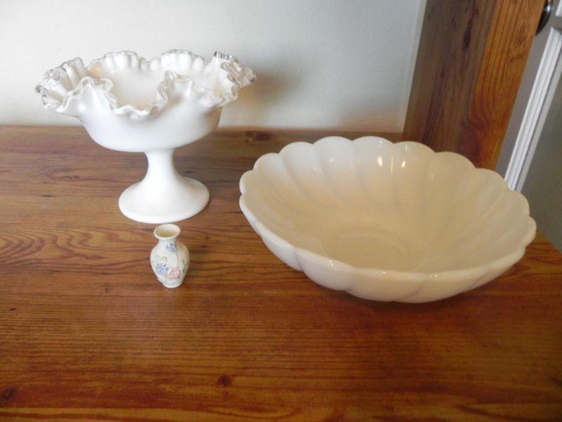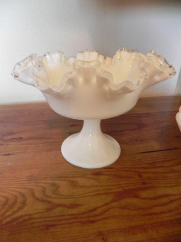 WHITE FENTON CANDY DISH AND MILK GLASS BOWL