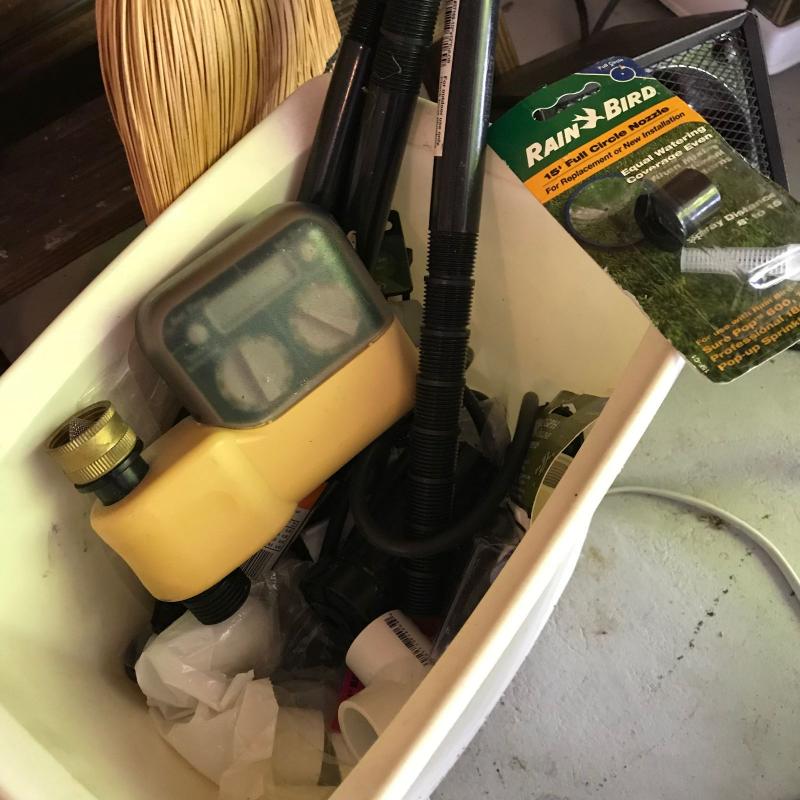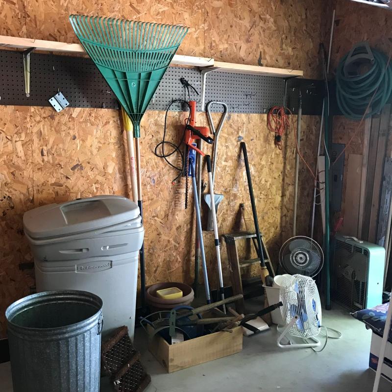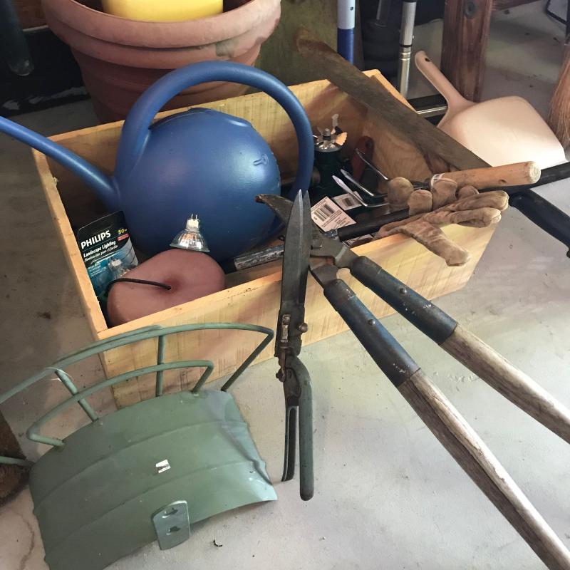 Everything you need for your home and garden. Lot includes trash cans, garden tools, step ladder, fans, hoses, and cleaning tools. See pics for details. No shipping