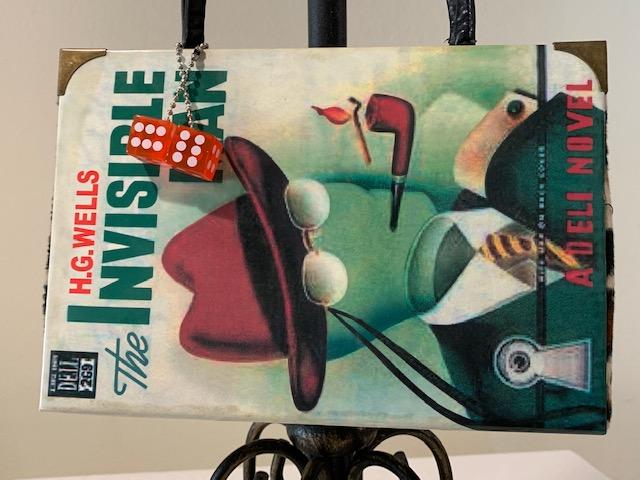 Karin's Kitsch purse by with HG Wells Invisible Man book jacket on the Cover.