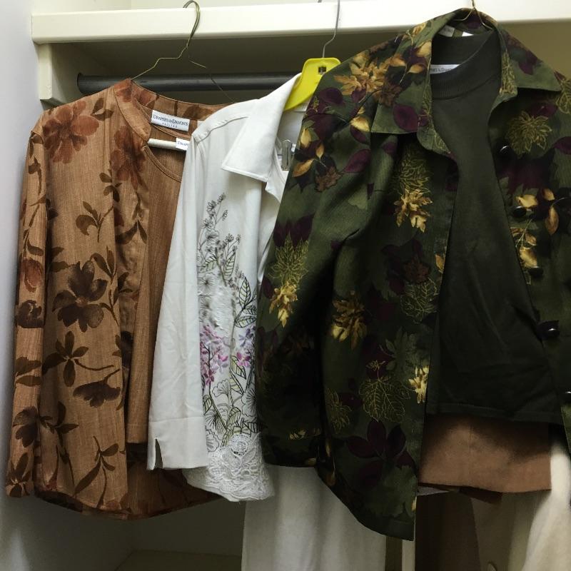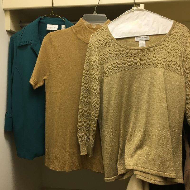 A plethora of ladies clothing. Most is Drapers and Damon’s petite small and extra small tops and pants sized six with some fours. Get enough clothes to last you years to come without breaking the bank.