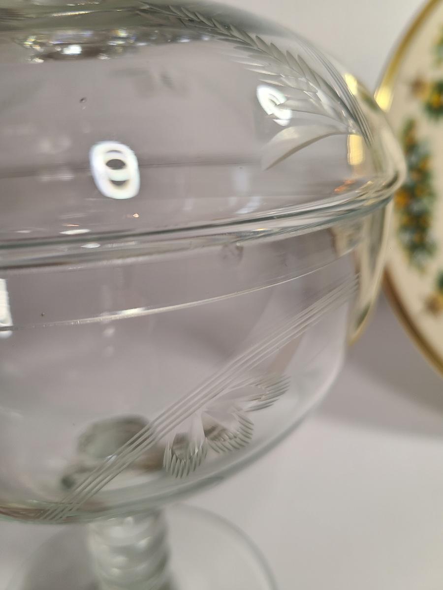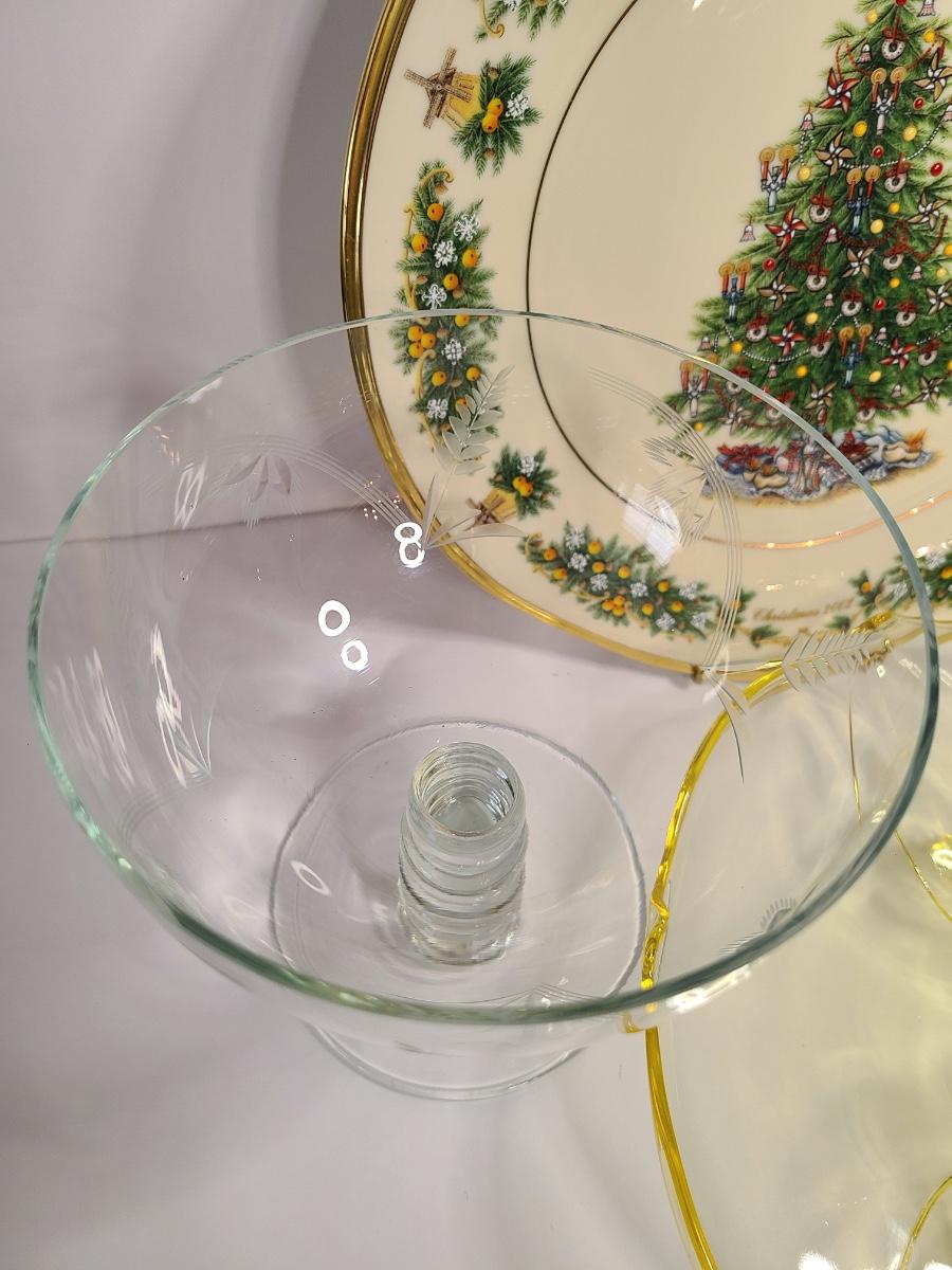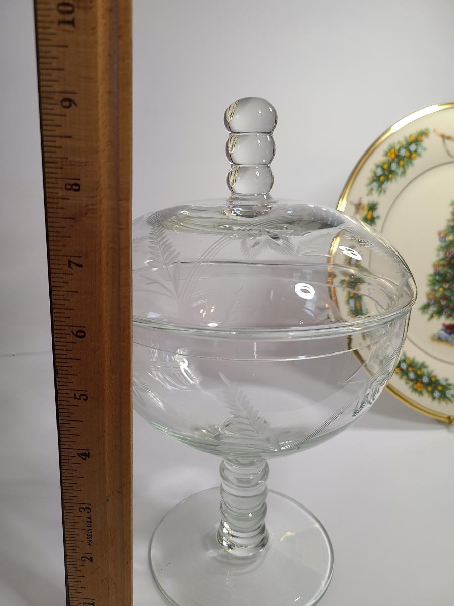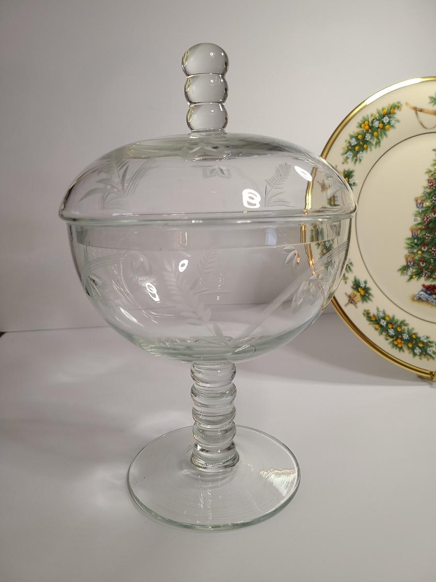 Lovely footed candy that is very elegant and dainty, it does under inspection have the tiniest flea bite chip to the edge of glass as shown in pictures. Comes with Lenox holiday dinner plater, and footed/curved yellow depression serving/cake plate. Please see all pictures as they are the best representation of the items. The pictures show condition, measurements if taken, and what is included in the lot. Due to the large amount that we photograph and the time frame, we are not always able to take measurements. All items unless noted, are pre-owned and have been used. If you purchased furniture, you must bring help. We do not allow one person to carry large furniture out on their own. Bring help, tools and a truck for the safety of our client’s homes, and your personal safety. Any damages that result to the property including walls, and floors due to moving of the furniture will be charged to the buyer. Company policy. Thank you.