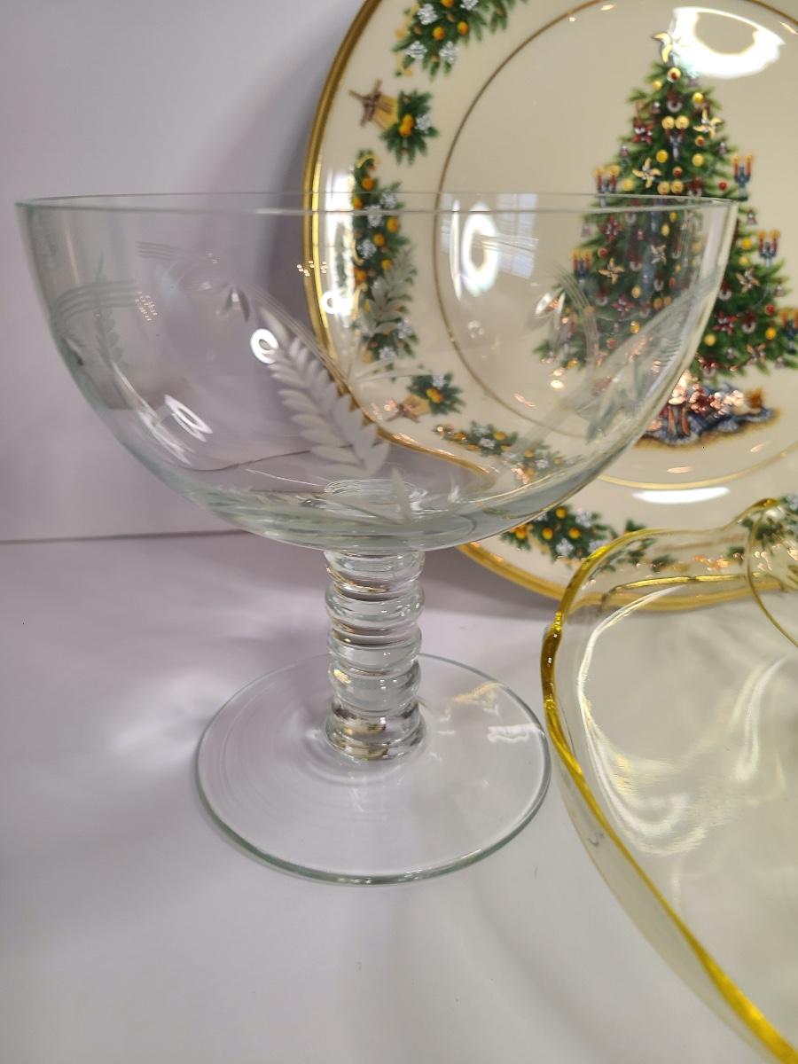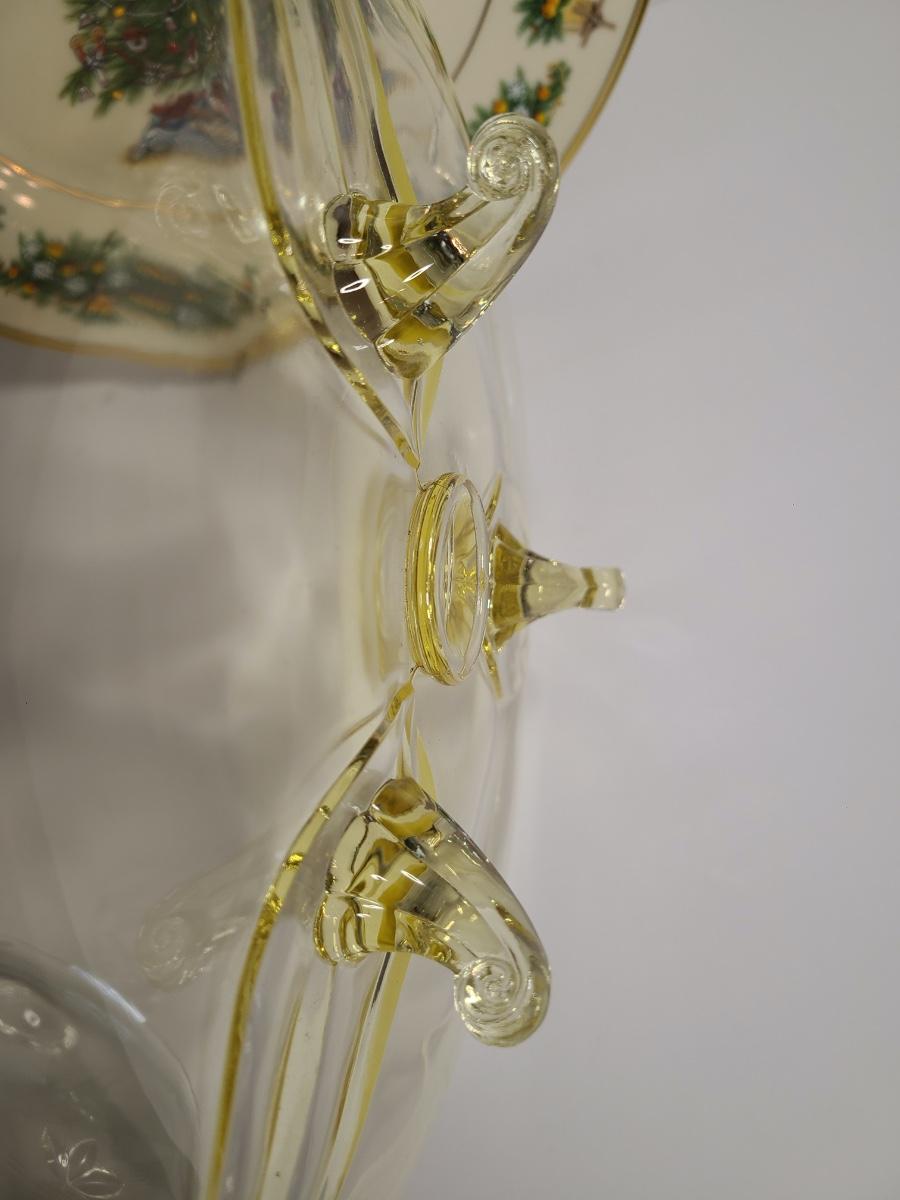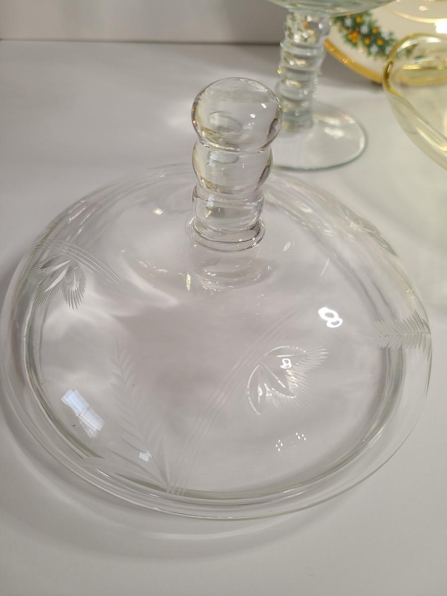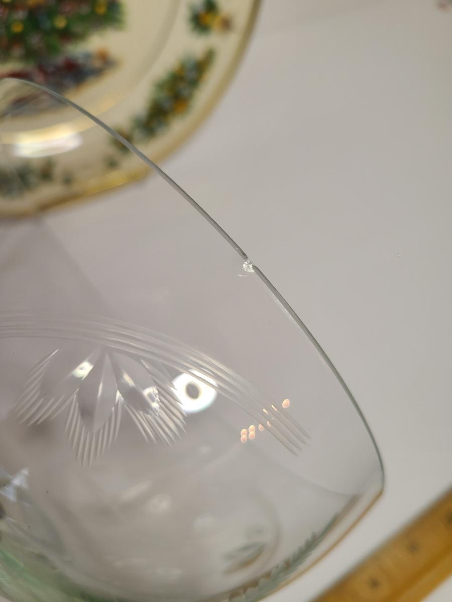 Lovely footed candy that is very elegant and dainty, it does under inspection have the tiniest flea bite chip to the edge of glass as shown in pictures. Comes with Lenox holiday dinner plater, and footed/curved yellow depression serving/cake plate. Please see all pictures as they are the best representation of the items. The pictures show condition, measurements if taken, and what is included in the lot. Due to the large amount that we photograph and the time frame, we are not always able to take measurements. All items unless noted, are pre-owned and have been used. If you purchased furniture, you must bring help. We do not allow one person to carry large furniture out on their own. Bring help, tools and a truck for the safety of our client’s homes, and your personal safety. Any damages that result to the property including walls, and floors due to moving of the furniture will be charged to the buyer. Company policy. Thank you.
