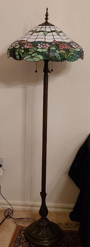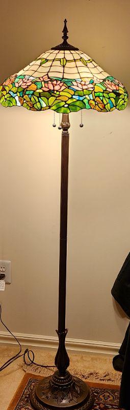 Beautiful 5 1/2 foot tall stained glass floor lamp. Tested and working. CLS