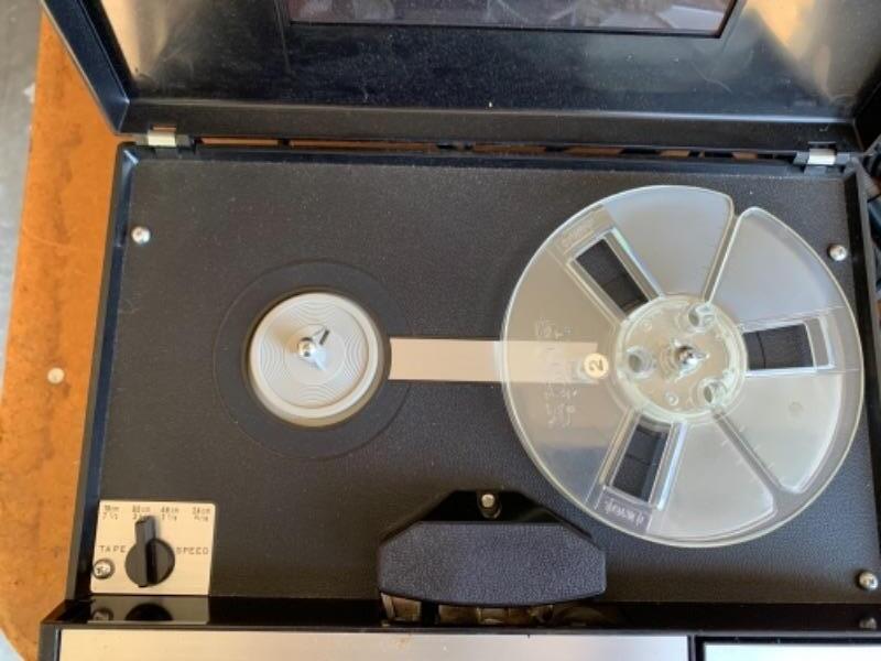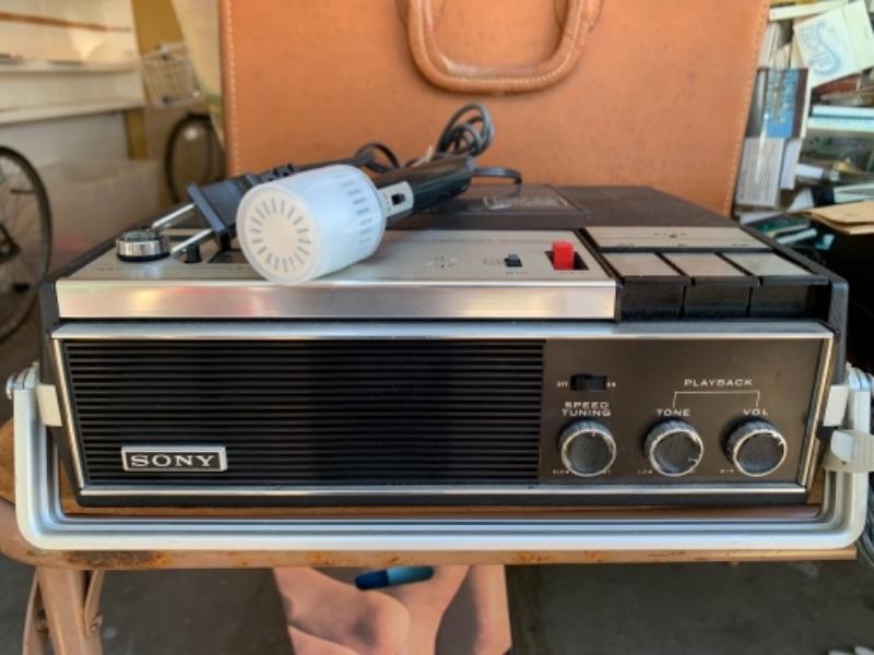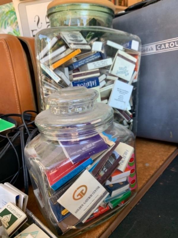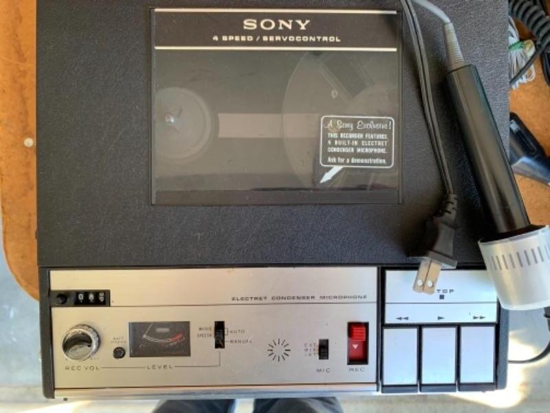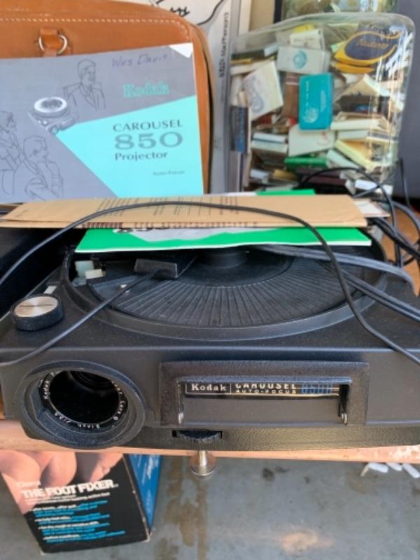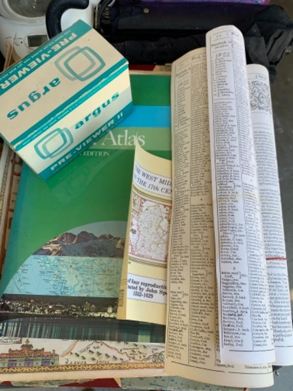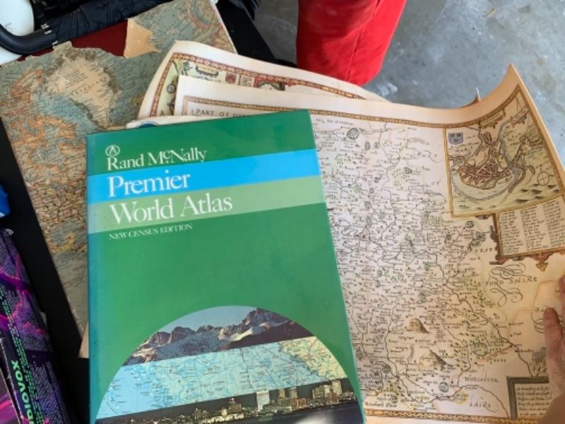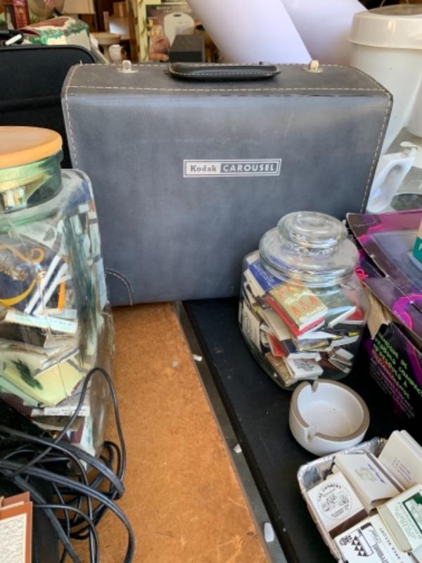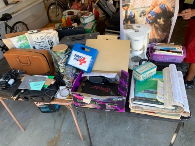 Lot 131. Maps, matchbook collection, CD disk changer, post cards, posters, slide viewer Cuisinart coffee maker, slide projector in case, vintage Sony tape recorder--$95