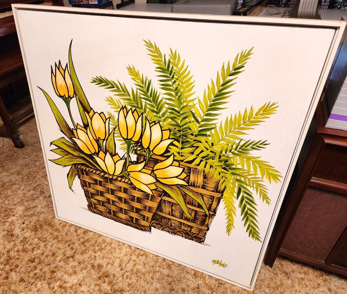 Lot #131 MCM Painting signed "Mitchells" - Expressionistic Basket w/Tulips Rendering